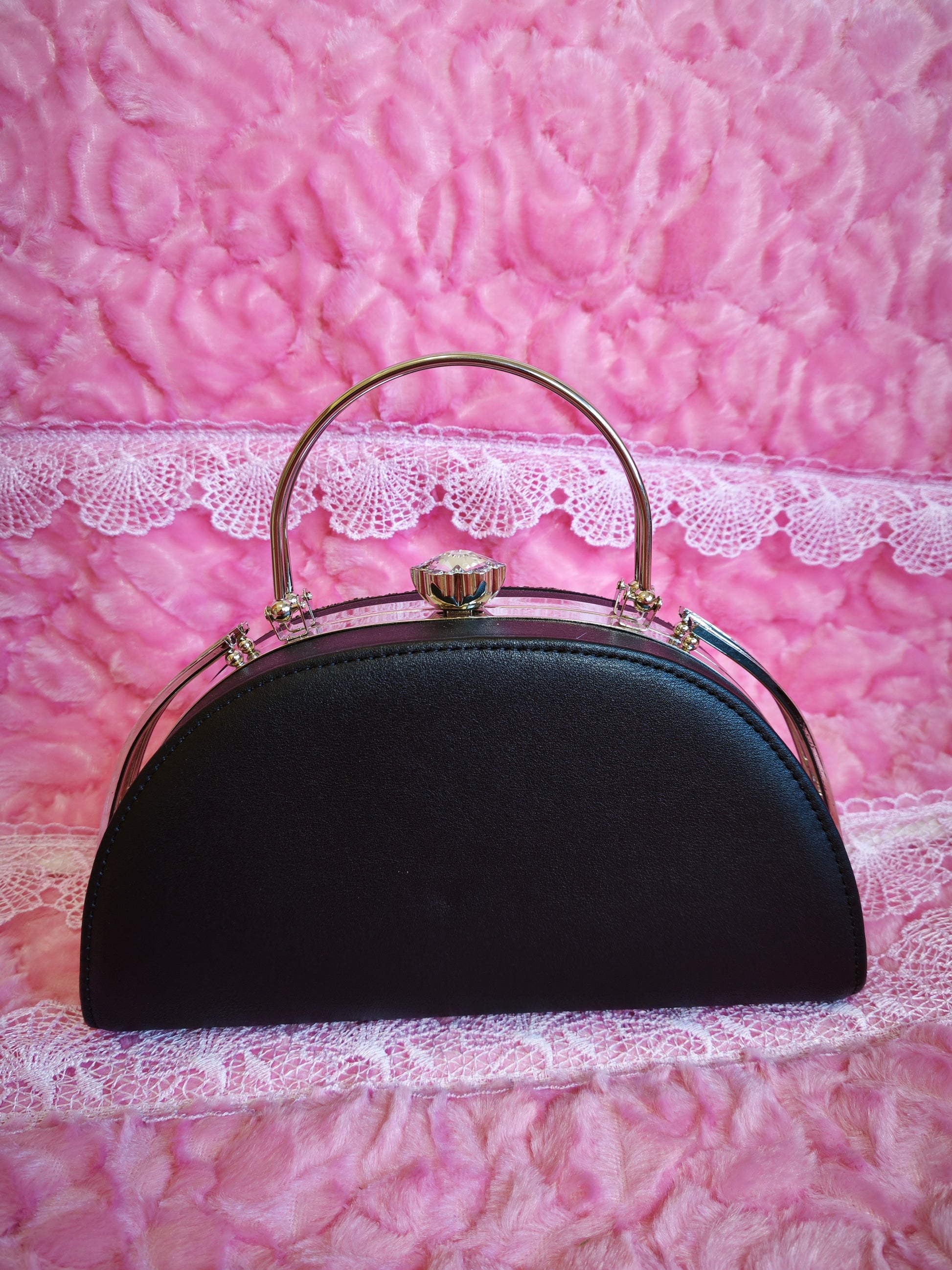 It features a classic semicircular bowling bag silhouette (round and plump lines, simple and elegant outline with inherent cool style), highlighted by "black diamond peacock pattern + black leather + flower-shaped crystal hardware buckle". The combination of "black diamond peacock pattern + black leather background" creates a "cool luxury dinner style" with profound black diamond luster and bright colorful diamond texture. The semicircular bowling bag has an "eye-catching focal filter", and the bag shape is suitable for high-end banquets, dark theme parties, red carpets, annual meetings and other formal style scenarios, making it a "luxurious highlight" for outfits.