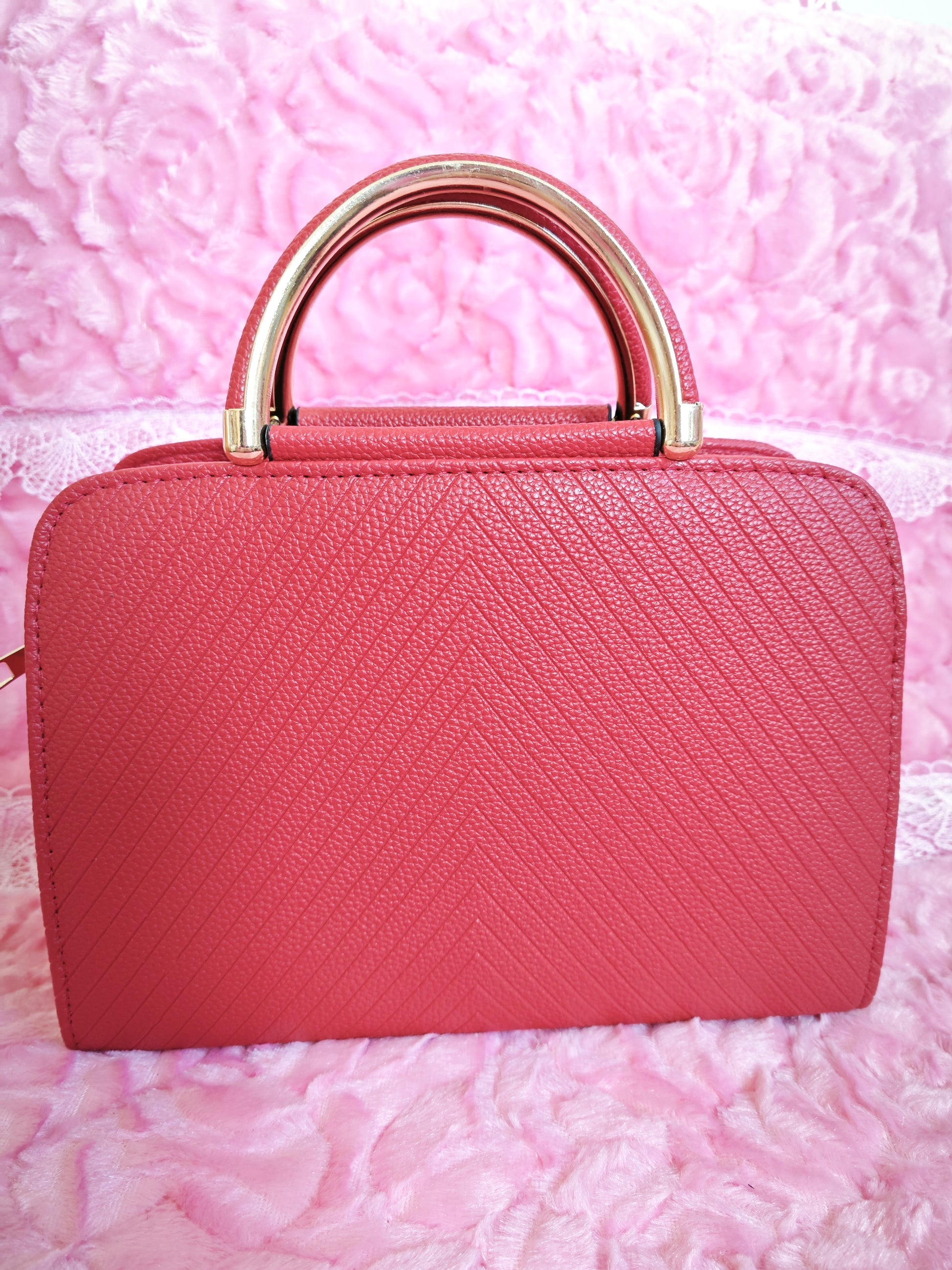 Classic structured handbag silhouette (round and stiff lines), paired with "diagonal pattern + lychee pattern splicing texture + metal ring handle" as accents—it combines "soft mist brick red base + splicing texture + gold hardware"; the retro warm tone of brick red collides with the exquisite details of the texture to create a "retro light luxury style"; the brick red bag body comes with an "atmosphere filter", suiting wedding banquets, workplaces, daily outings and other style scenarios as a "temperament texture anchor" for outfits.