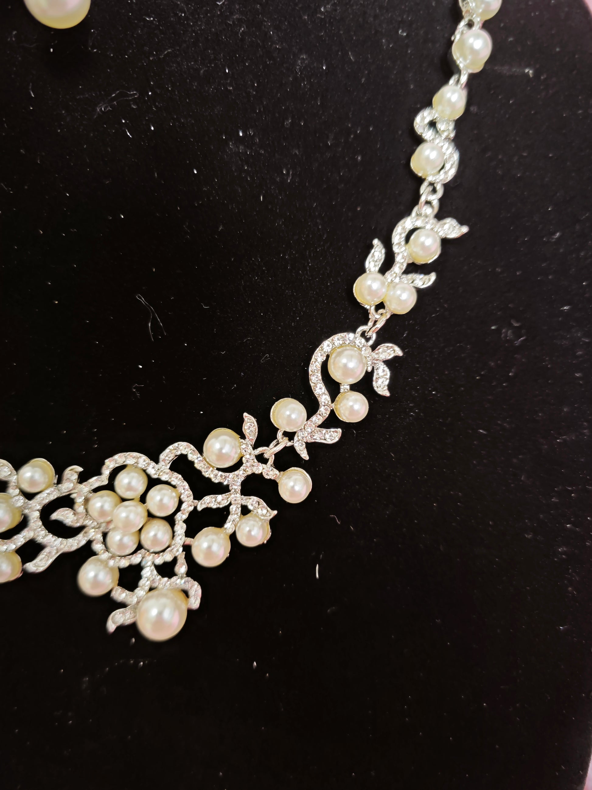 The necklace has an adjustable circumference design (42+5cm, suitable for most neck circumferences), and the earrings are drop-style (easy and stable to wear). The silver pearl rhinestone set can be worn as a whole or split. The necklace is suitable for clothes with strapless, off-the-shoulder, V-necklines, etc., and the earrings are suitable for various earring matching needs. Multiple matching methods meet the styling needs of different scenarios.
