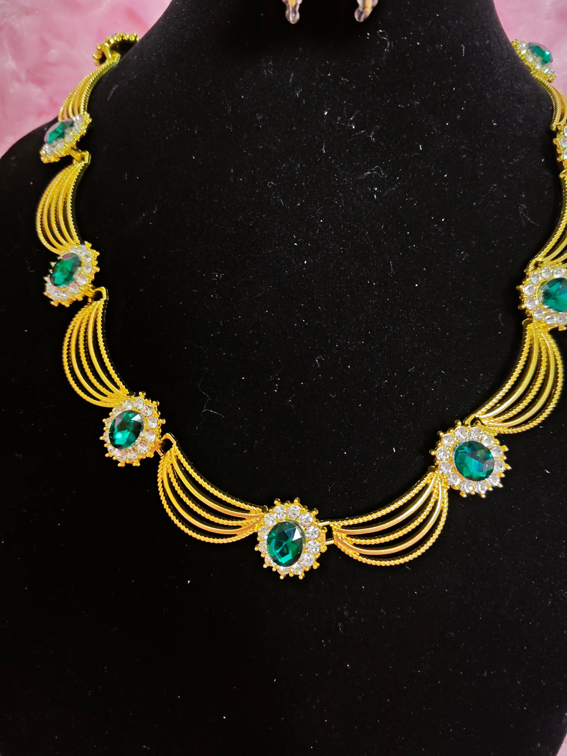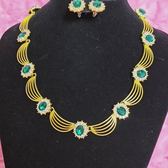 Gilded Emerald & Crystal Woven Necklace & Earring Set