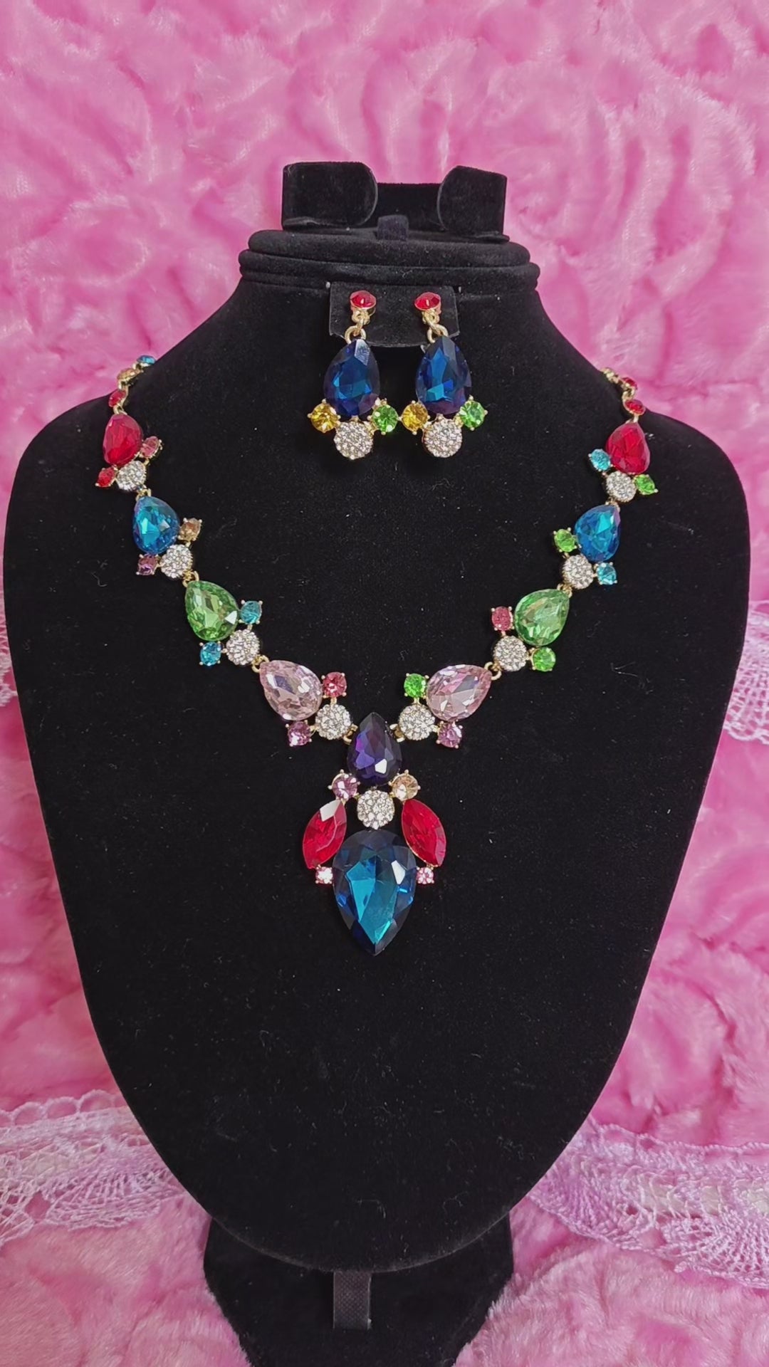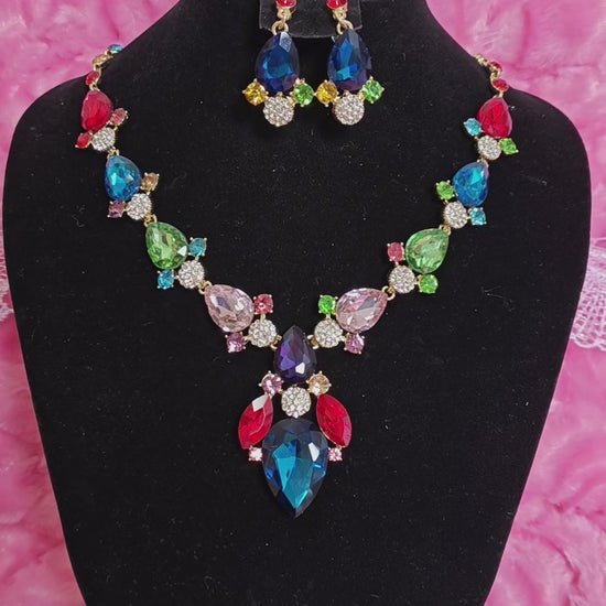 Gilded Multi-Color Crystal Drop Necklace & Earring Set