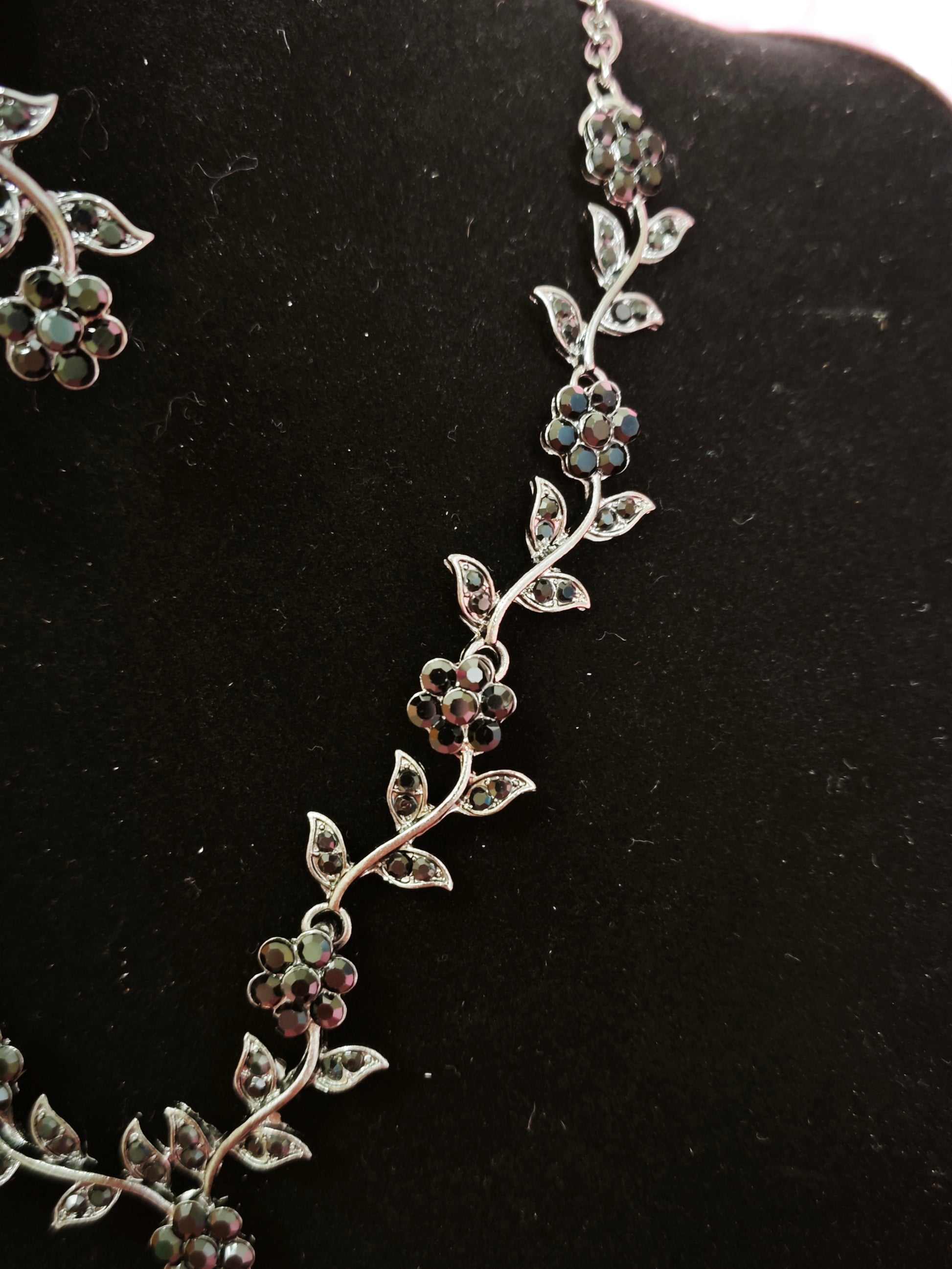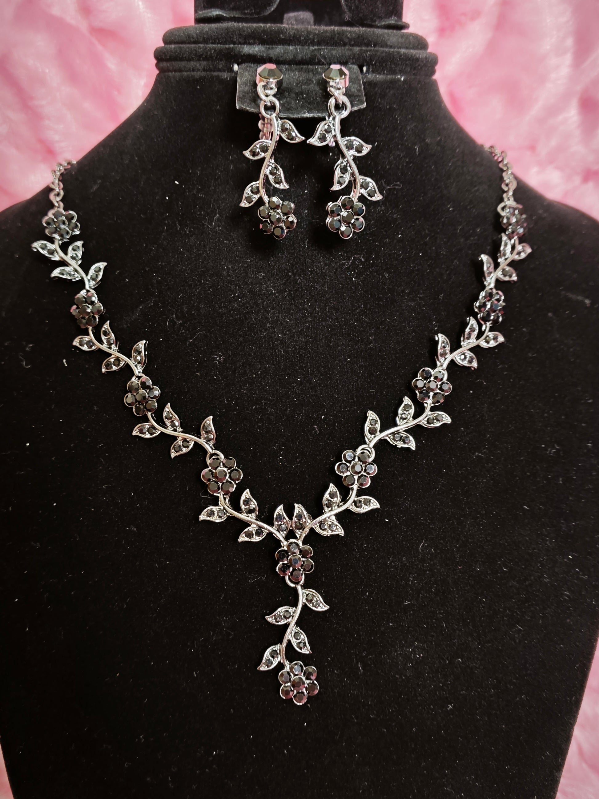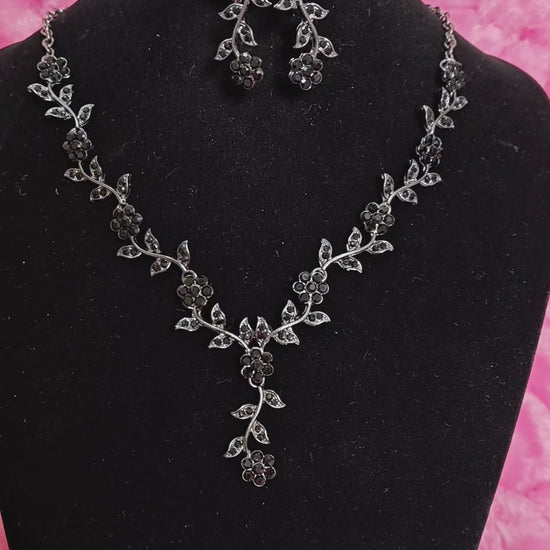 Mysterious Black Crystal Flower Vine Statement Jewelry Set