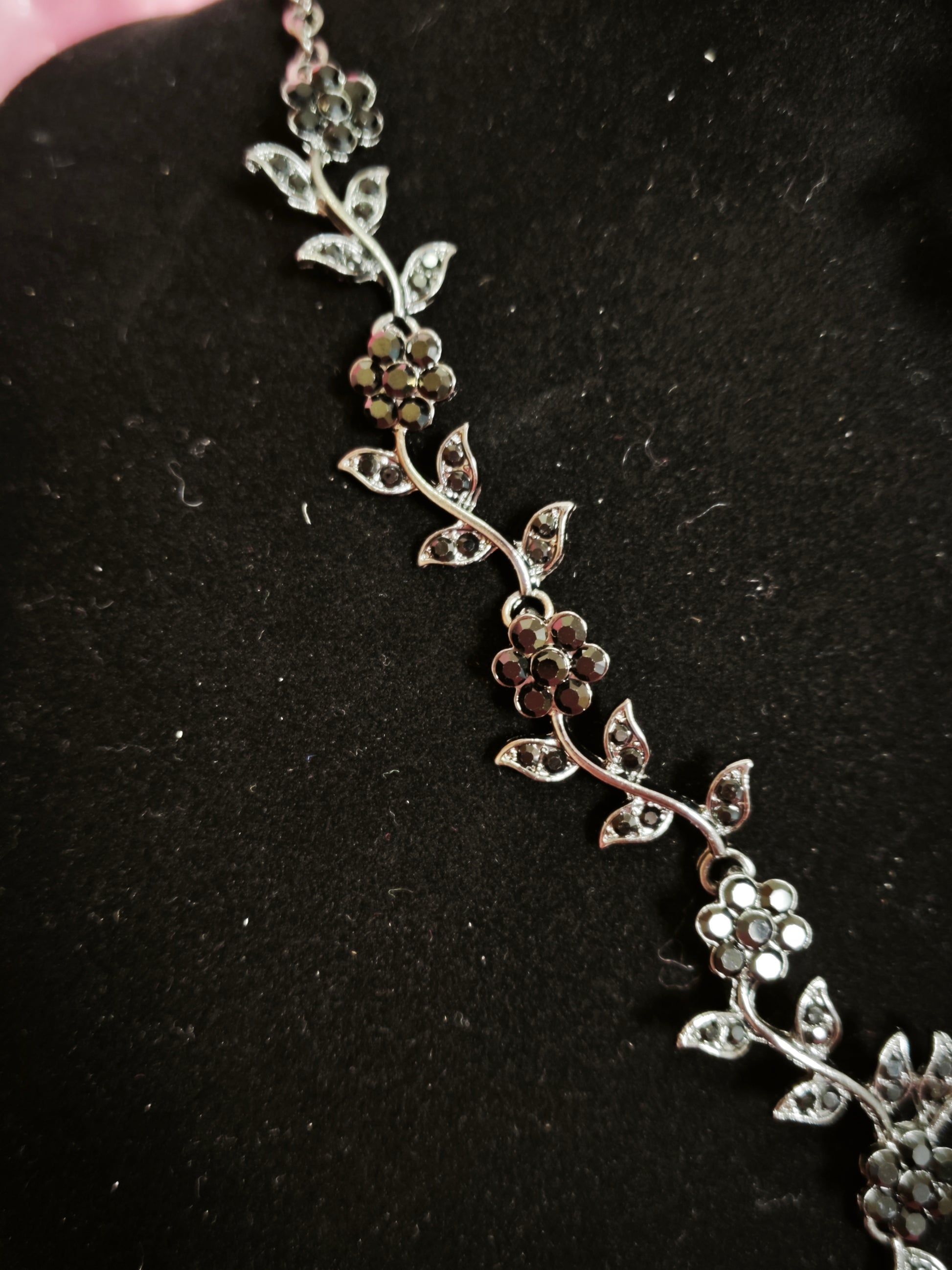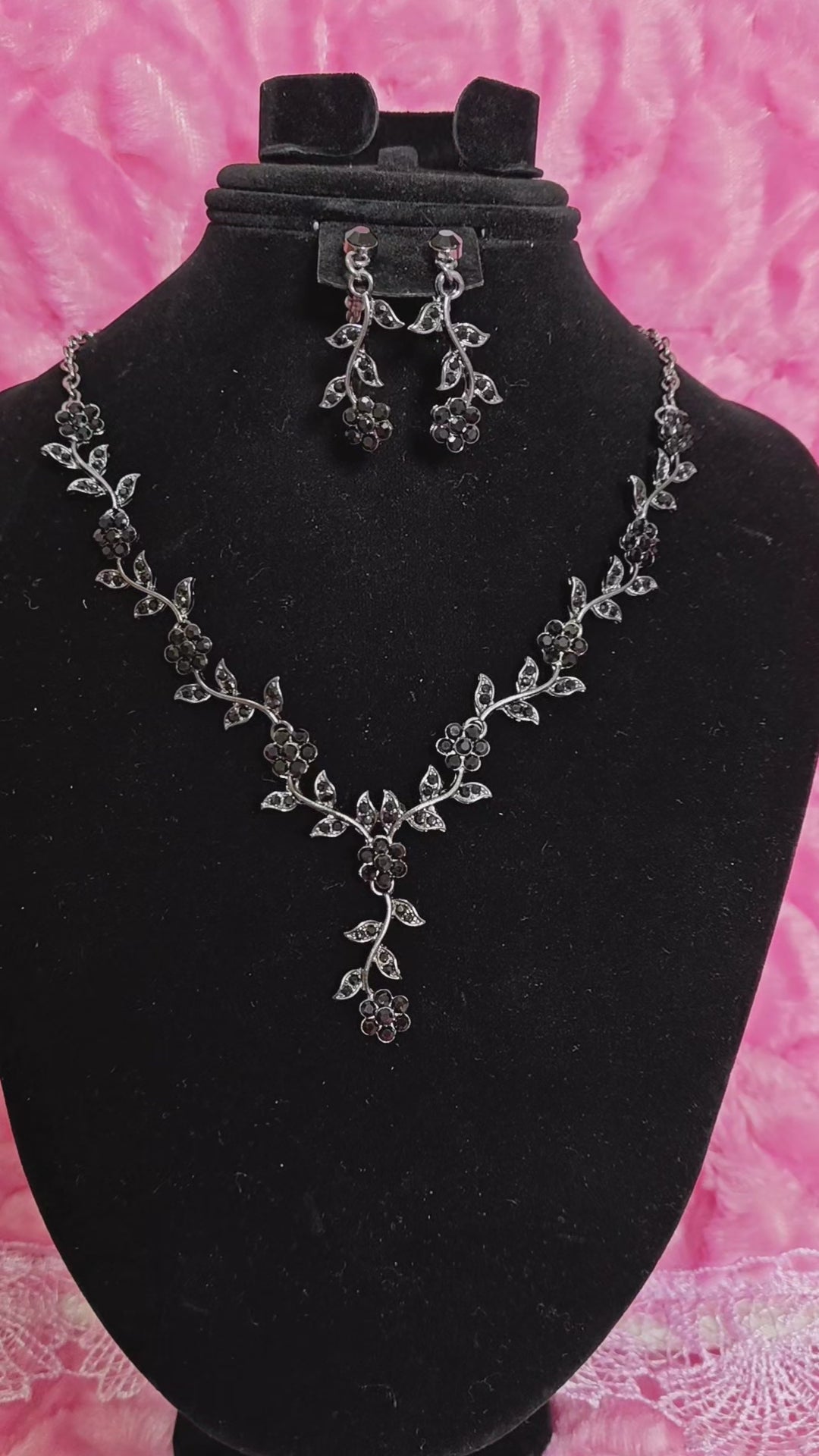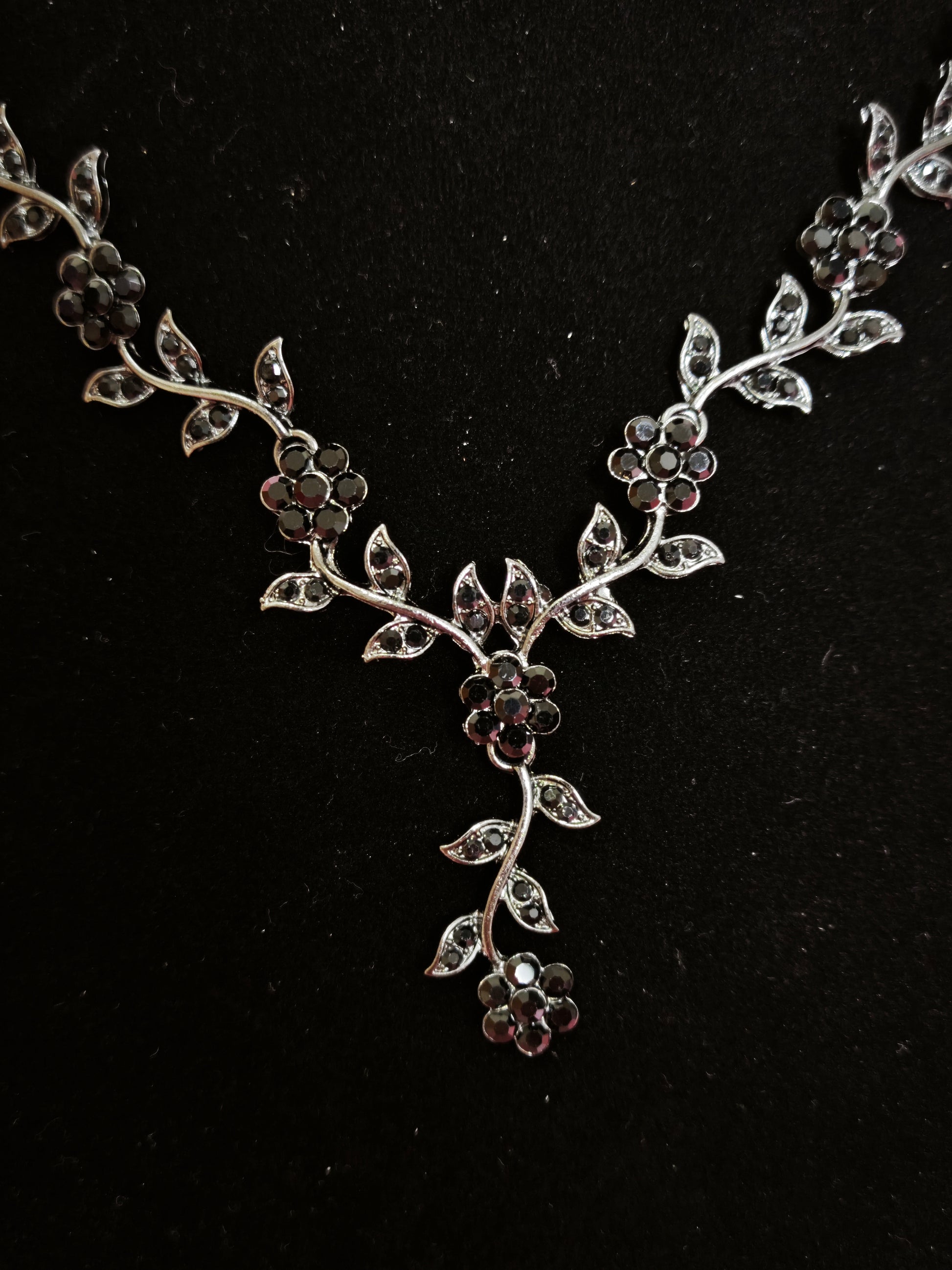 Mysterious Black Crystal Flower Vine Statement Jewelry Set