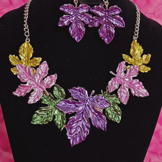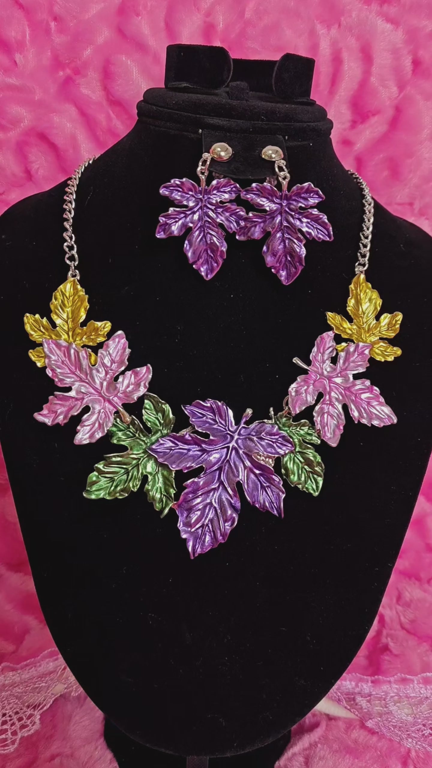 Pastel Maple Leaf Statement Necklace & Earring Set
