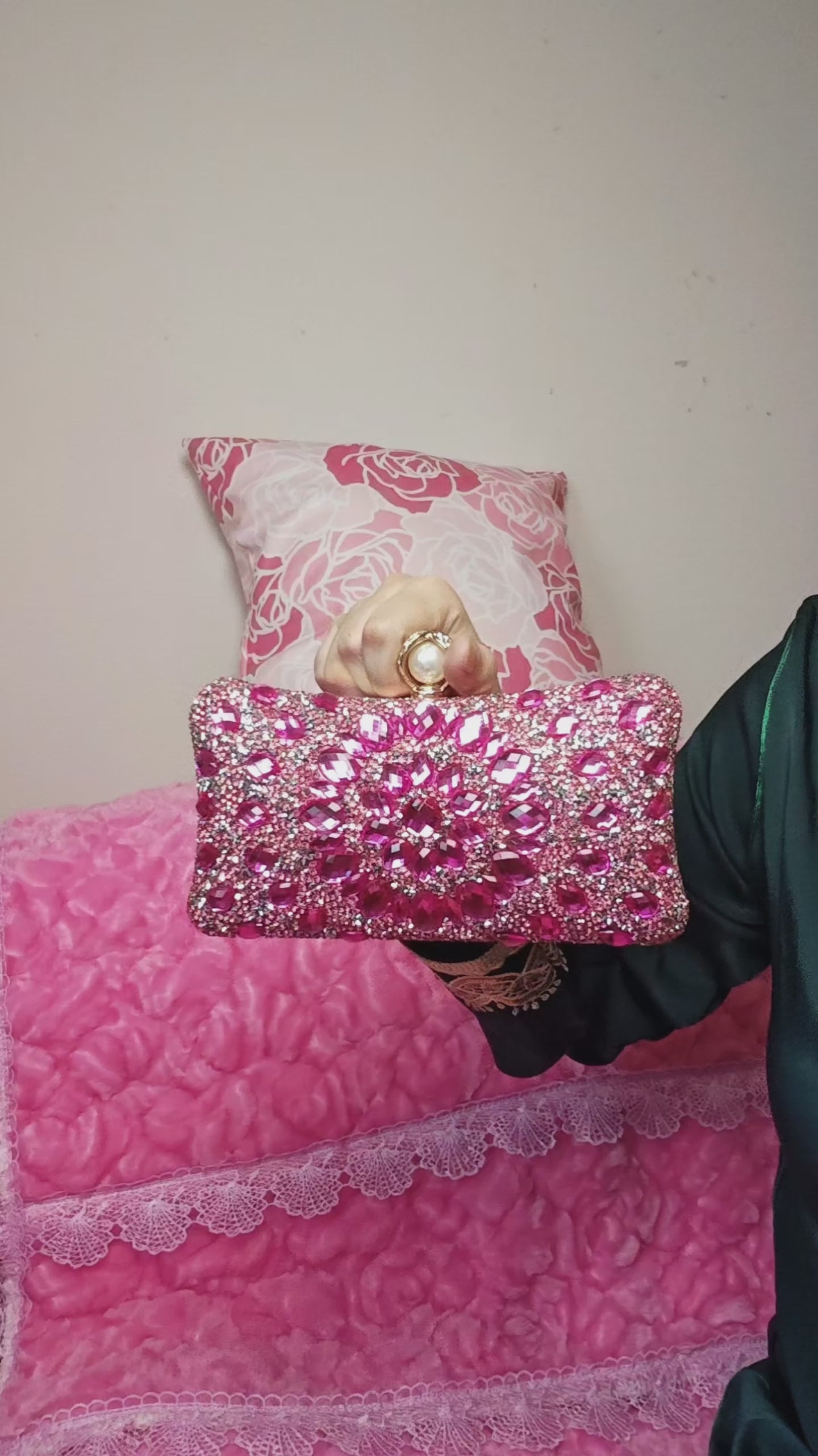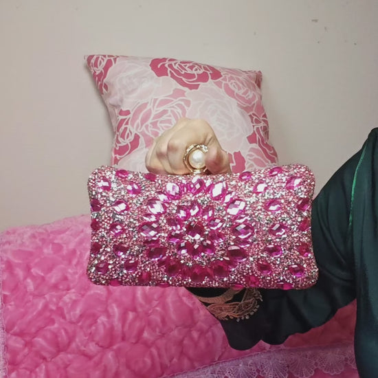Pink Crystal & Pearl-Clasp Evening Clutch