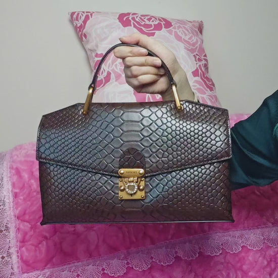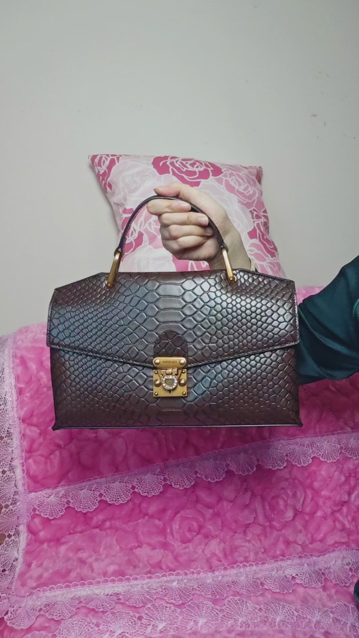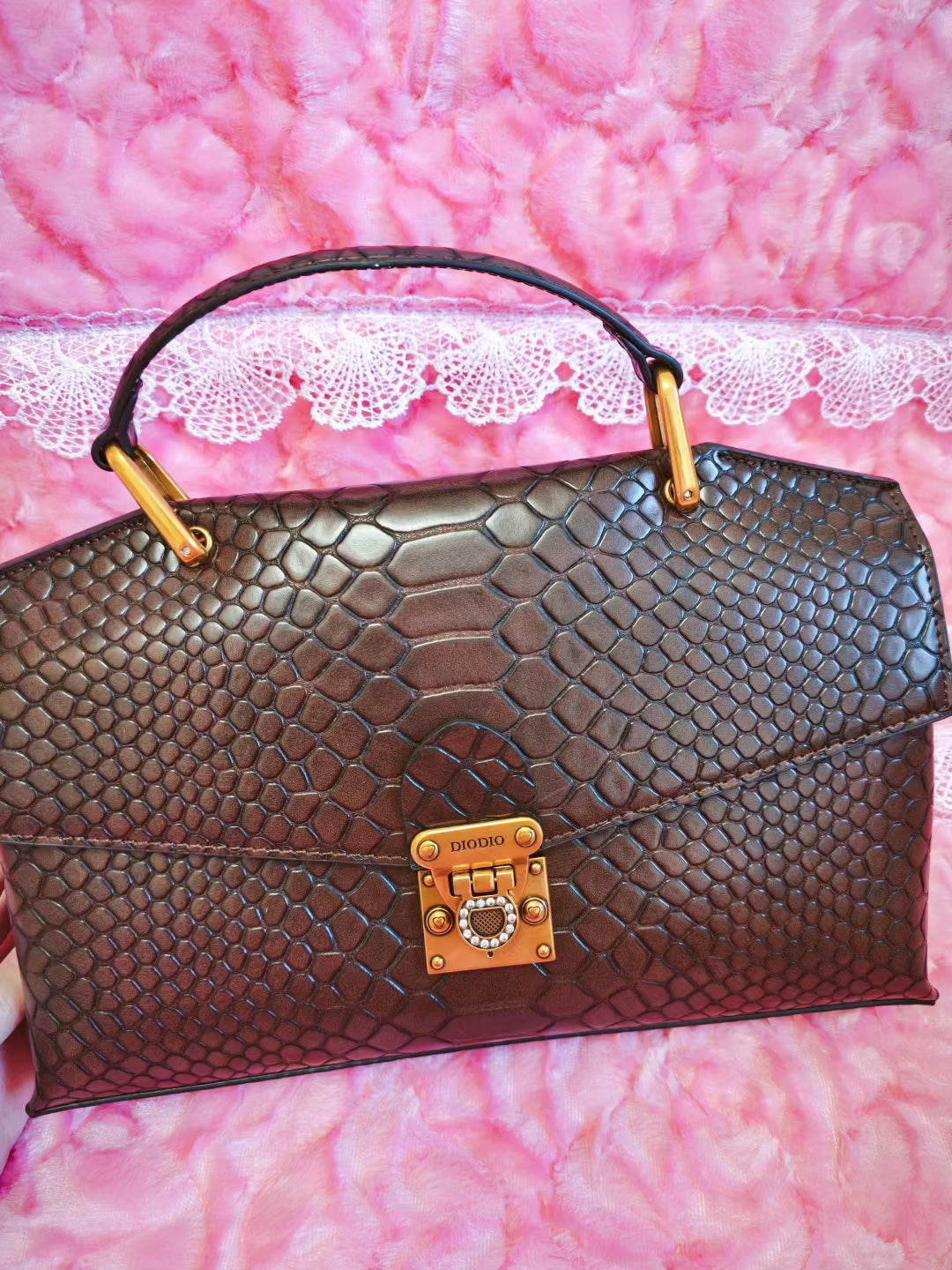 Full-panel precision-engraved snake patterns, with layered textures mimicking the natural grain of genuine leather; paired with diamond-encrusted gilded lock as accents—the elegant tension of retro snake patterns collides with the opulence of gilded hardware to create a "warm luxury vibe"; the dark brown snake pattern comes with a "retro lady filter," suiting French retro, sophisticated elegant styles, etc.—it’s a "texture anchor" for outfits.