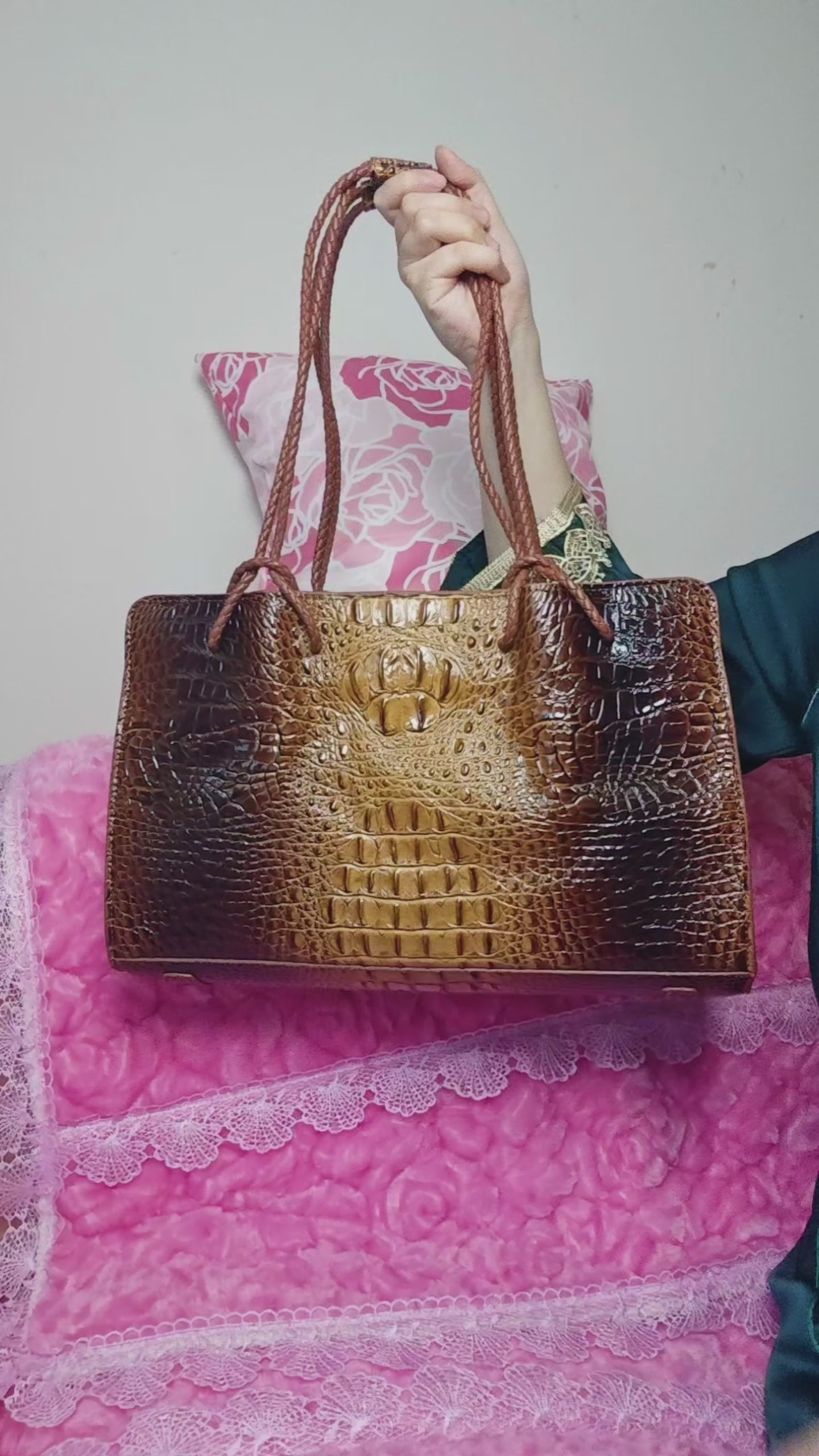 Made of top-grain cowhide (tough and elastic texture, restoring the original texture of genuine leather), finished with "glossy surface light + crocodile pattern gradient embossing technology"—the coffee gold gradient version adopts "gilded crocodile pattern gradient technology". The black gold and gold brown gradient base is combined with a mirror glossy texture, and the crocodile pattern texture presents a layered three-dimensional effect through the gradient technology. Decorated with woven cowhide handles and metal hardware, it not only retains the cowhide's wear-resistant and scratch-resistant properties, but also creates a retro light luxury feel with the "glossy cowhide + gradient crocodile pattern". Its texture is high-grade, not easy to scratch or fade, and can maintain a delicate glossy finish for a long time in daily use.