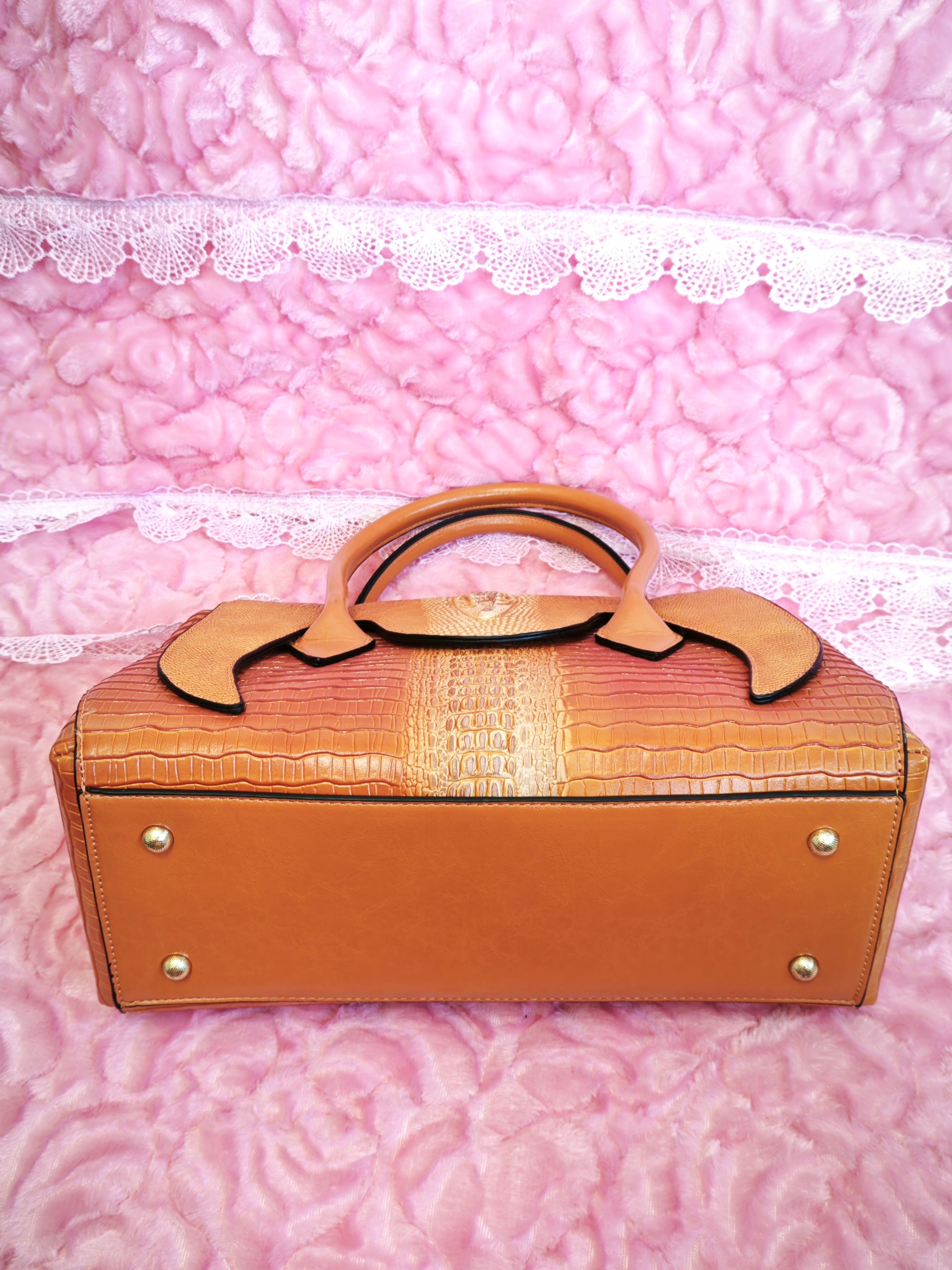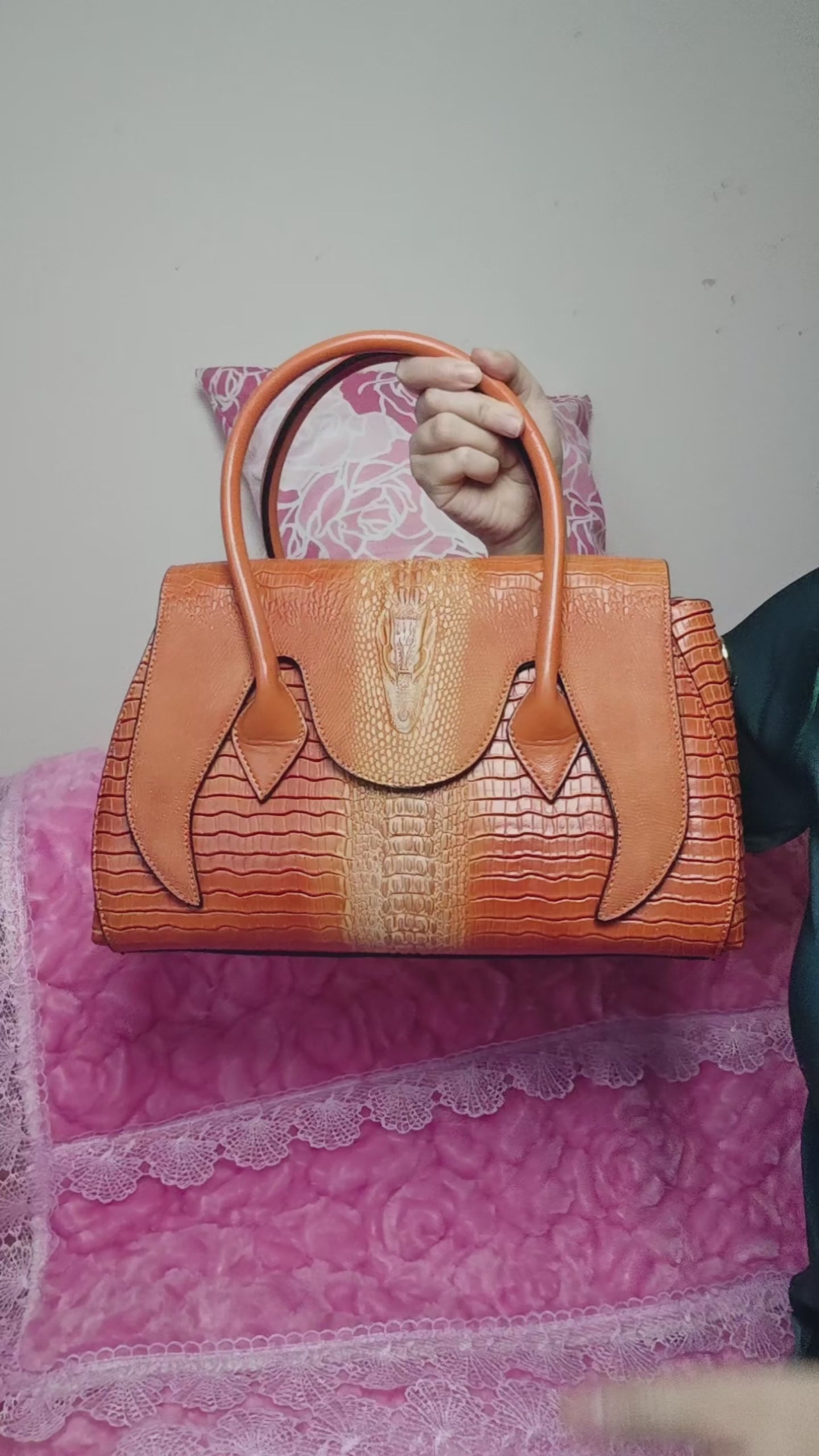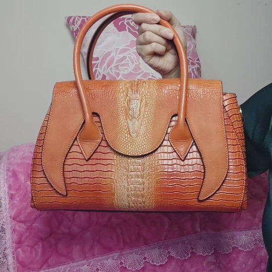 Made of top-grain cowhide (tough and elastic texture, restoring the original texture of genuine leather), finished with "matte texture + crocodile pattern embossing and color touching technology"—the vibrant orange version adopts "bright orange crocodile pattern embossing technology". The vivid bright orange base is combined with a delicate matte texture, and the crocodile pattern texture presents a layered three-dimensional effect through the color touching technology. Decorated with matching cowhide handles and metal hardware, it not only retains the cowhide's wear-resistant and scratch-resistant properties, but also creates a retro light luxury feel with the "matte cowhide + three-dimensional crocodile pattern". Its texture is high-grade, not easy to scratch or fade, and can maintain a delicate leather finish for a long time in daily use.