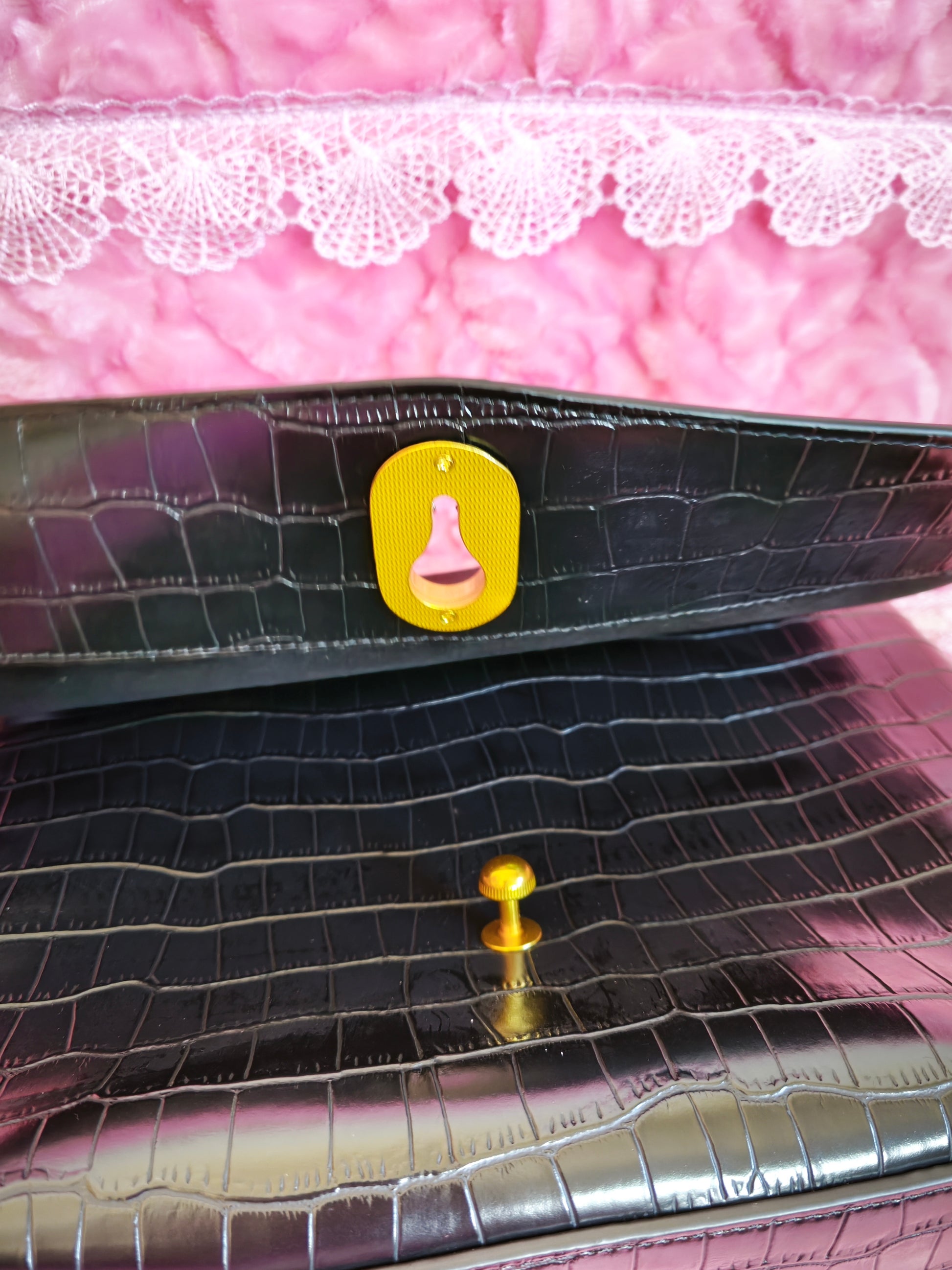 Made of high-quality textured PU fabric (delicate and flexible, comparable to genuine leather), finished with "3D crocodile pattern + glossy surface technology"—the black version adopts "deep jet-black crocodile pattern glossy technology"; the pure jet-black base is combined with 3D crocodile patterns, retaining the fabric's lightweight and dirt-resistant properties while adding refined retro layers with "gilded metal lock"; the texture is close to genuine leather and long-lasting, resisting aging in daily use.