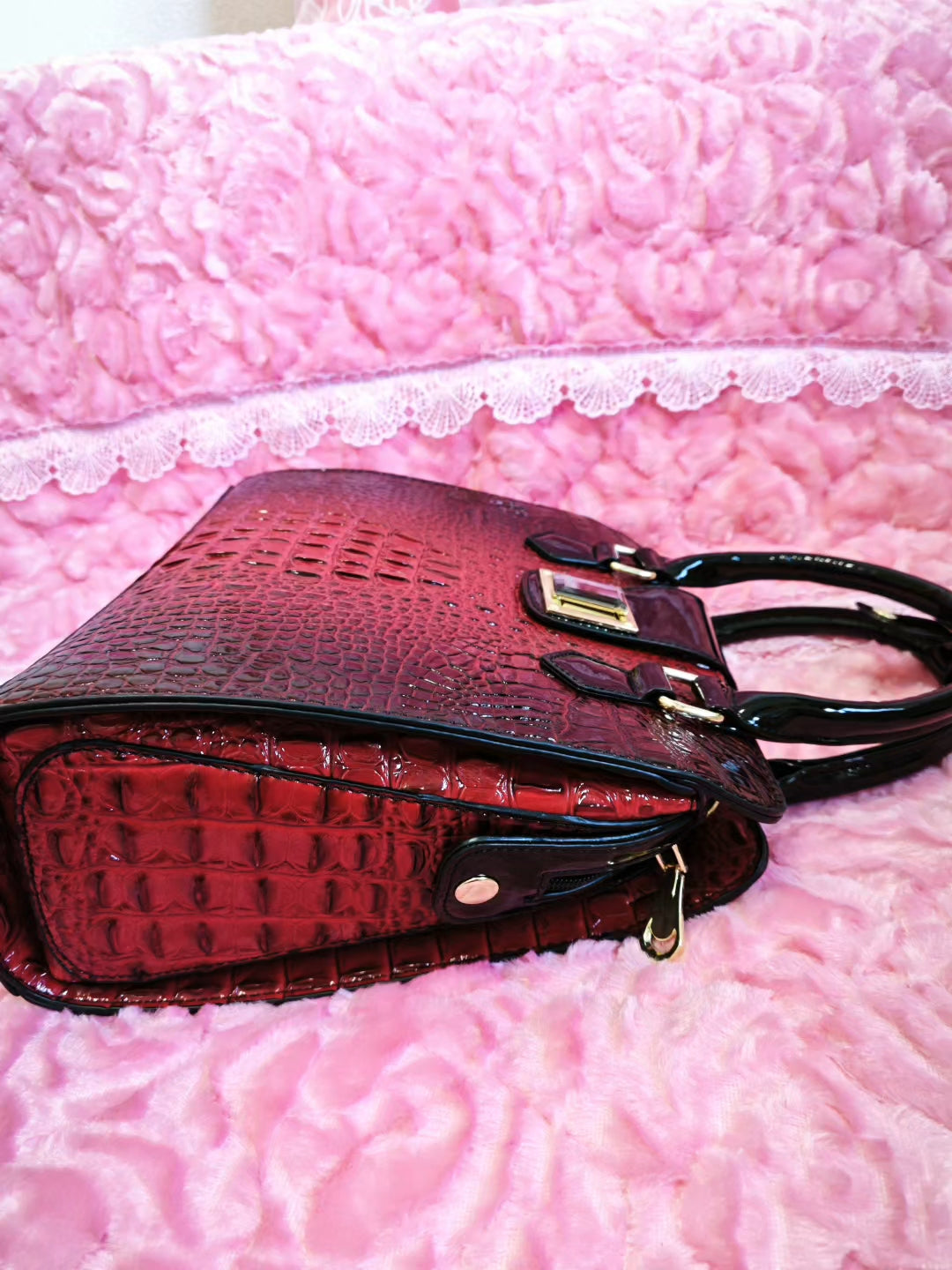 Full-panel precision-engraved crocodile patterns, with layered textures mimicking the natural grain of genuine leather; paired with gilded hardware accessories as accents—the grand tension of retro crocodile patterns collides with the sophistication of gilded metal to create a "burgundy genuine leather light luxury vibe"; the burgundy gradient crocodile pattern comes with a "retro diva filter," suiting banquet appointments, workplace commutes, etc.—it’s a "rich high-end texture anchor" for outfits.