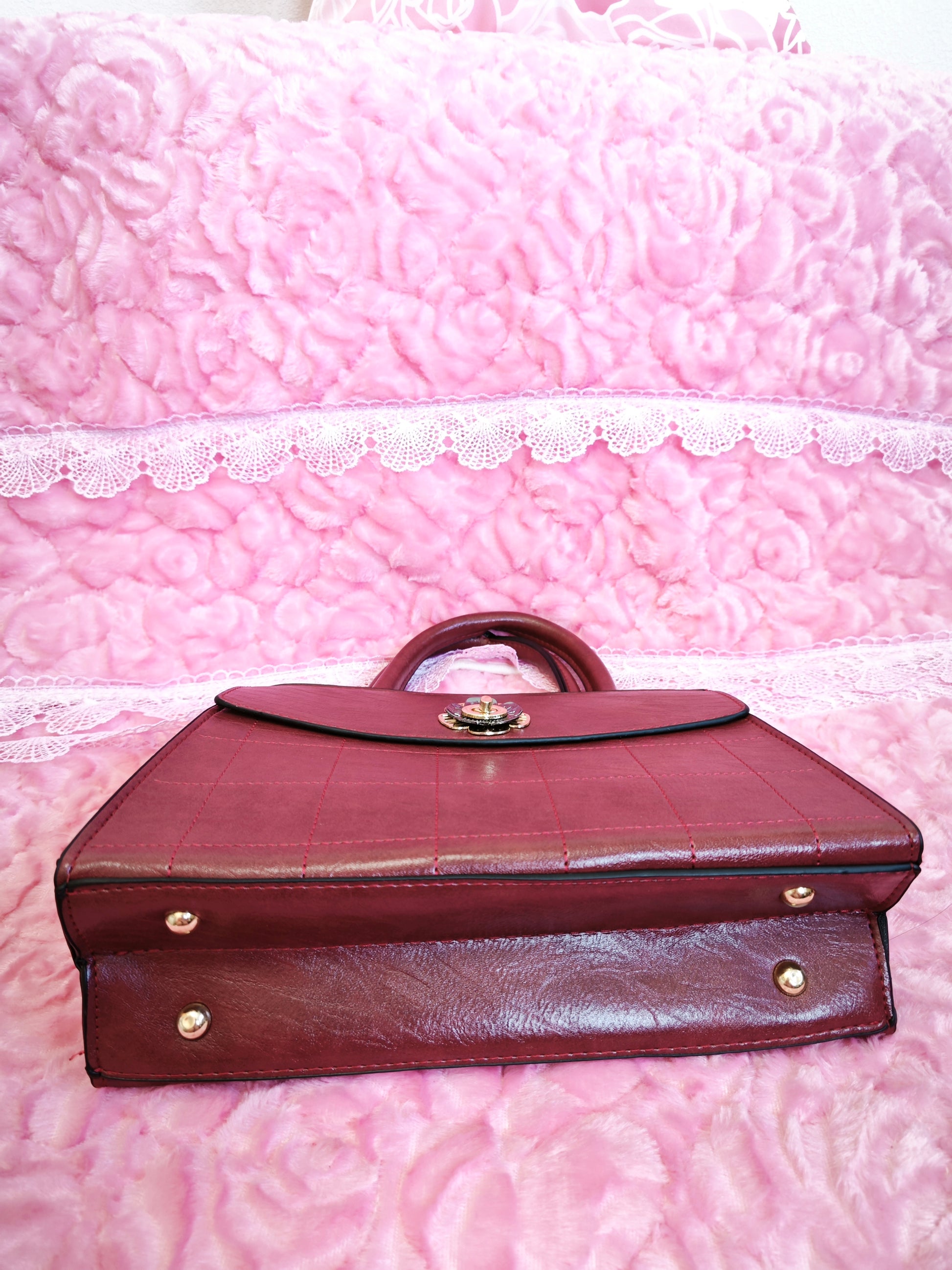 Classic mother-child bag silhouette (atmospheric and neat lines), paired with "soft pattern texture + metal flower buckle" design as accents—it combines "wine red base + soft pattern texture + gold flower buckle"; the rich red tone and exquisite hardware details collide to create a "retro elegant light luxury vibe"; the red mother-child bag body comes with a "noble versatile filter," suiting workplace, banquets and other style scenarios as a "retro texture anchor" for outfits.