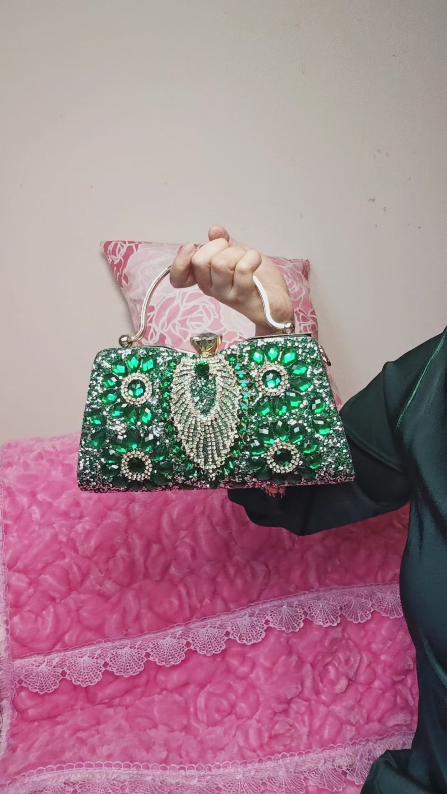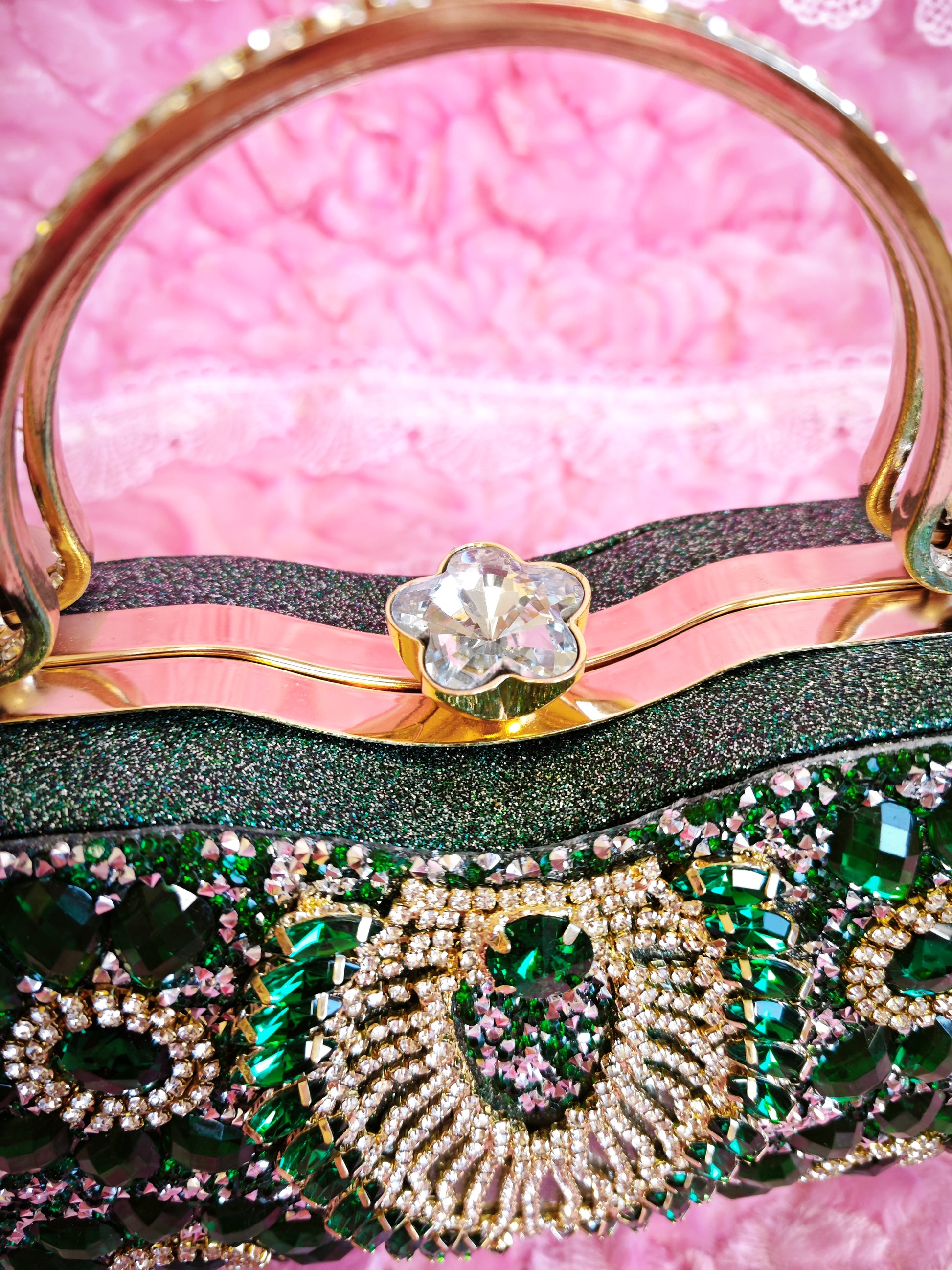- Storage: Keep in a dust bag to avoid scratches on rhinestones and hardware, store in a dry and ventilated area to prevent oxidation of metal hardware and discoloration of emerald rhinestones;