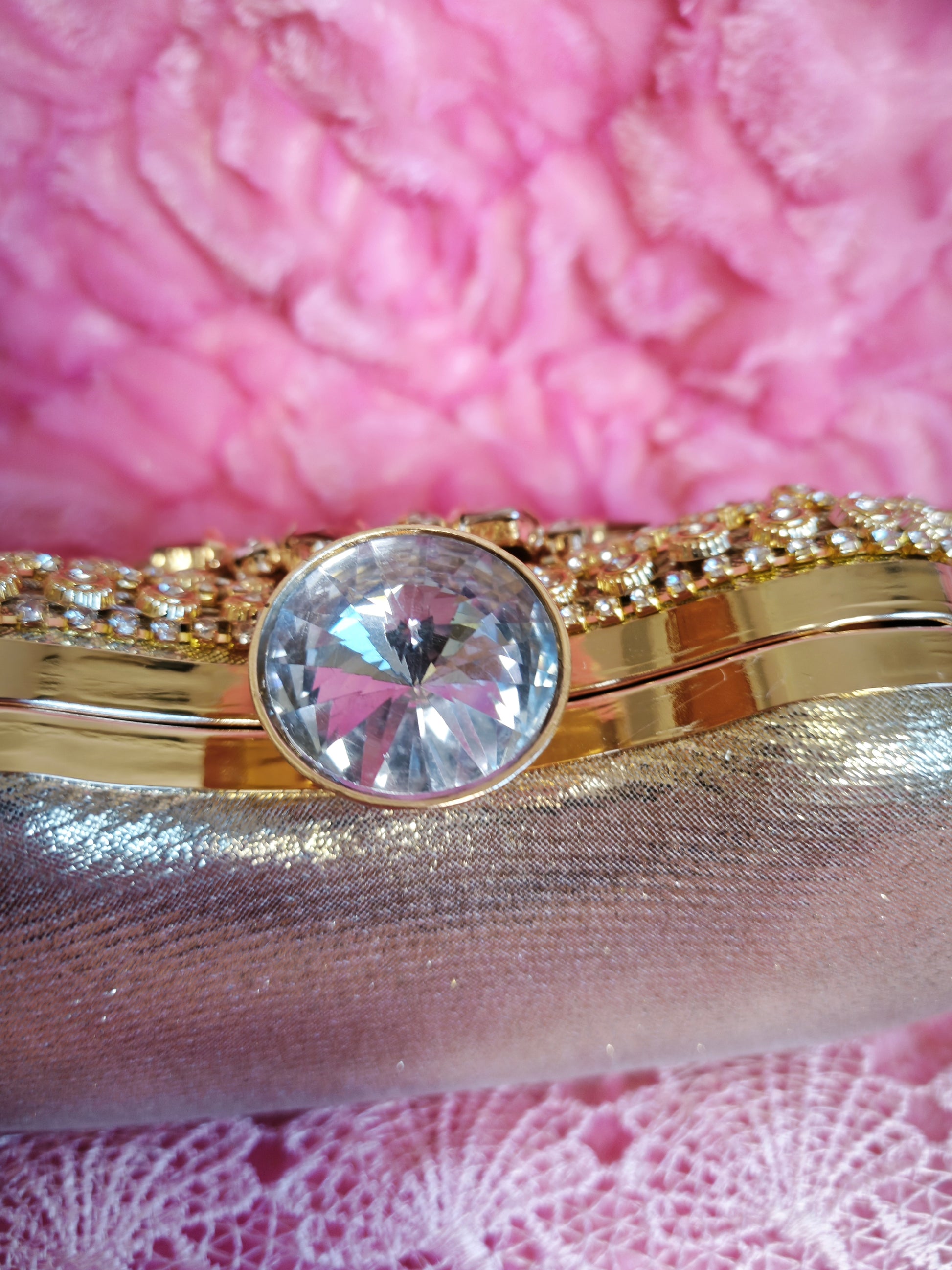 Gold Crystal Floral Heart-Shaped Evening Clutch