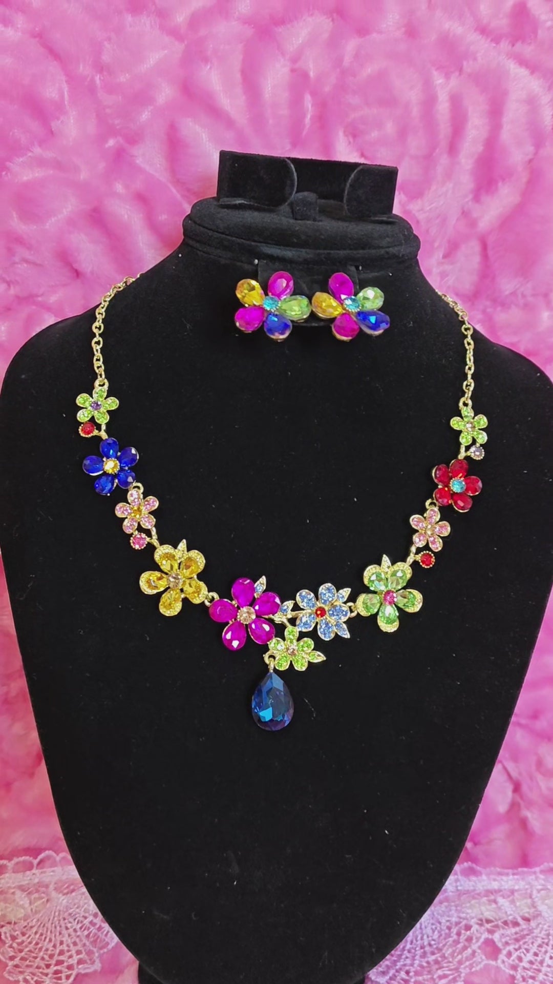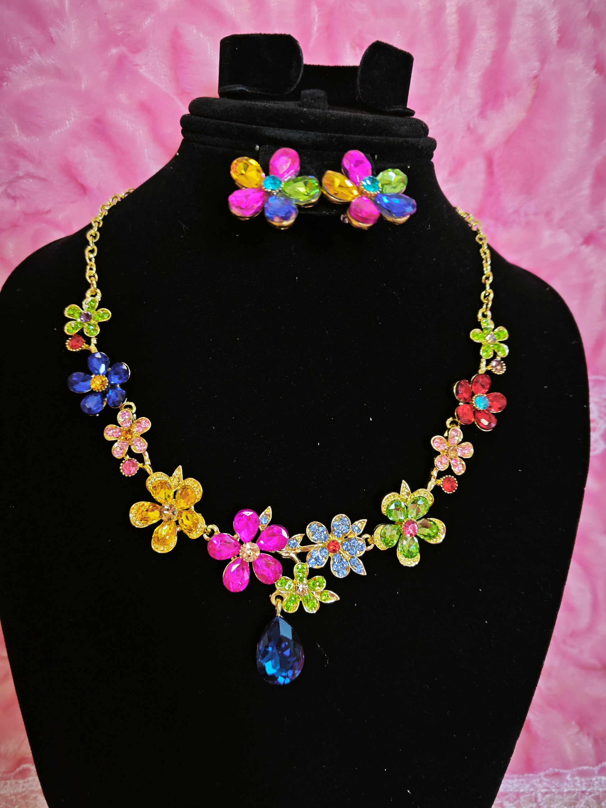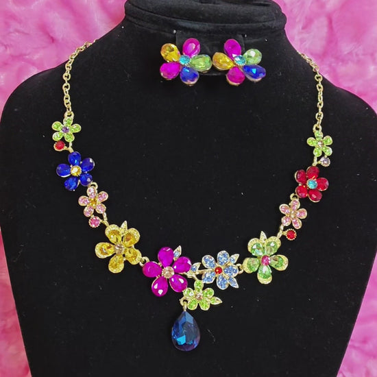 Gold-Plated Multicolor Flower & Teardrop Gem Jewelry Set