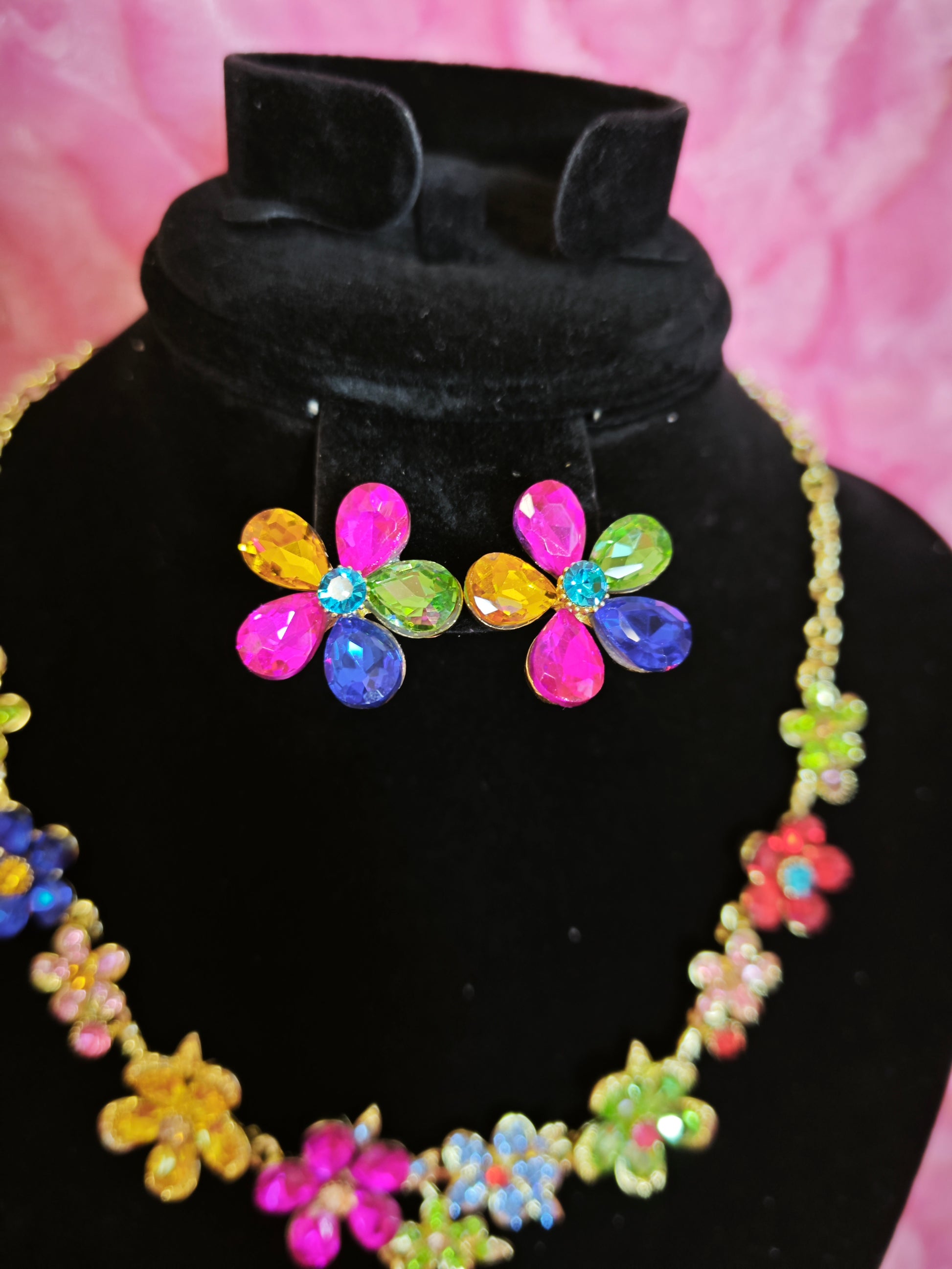 The necklace has an adjustable circumference design (42+5cm suitable for most neck circumferences), and the earrings are stud-style (easy and stable to wear). The colorful rhinestone set can be worn as a whole or split. The necklace is suitable for clothes with strapless, off-the-shoulder, low necklines, etc., and the earrings are suitable for various earring matching needs. Multiple matching methods meet the styling needs of different scenarios.
