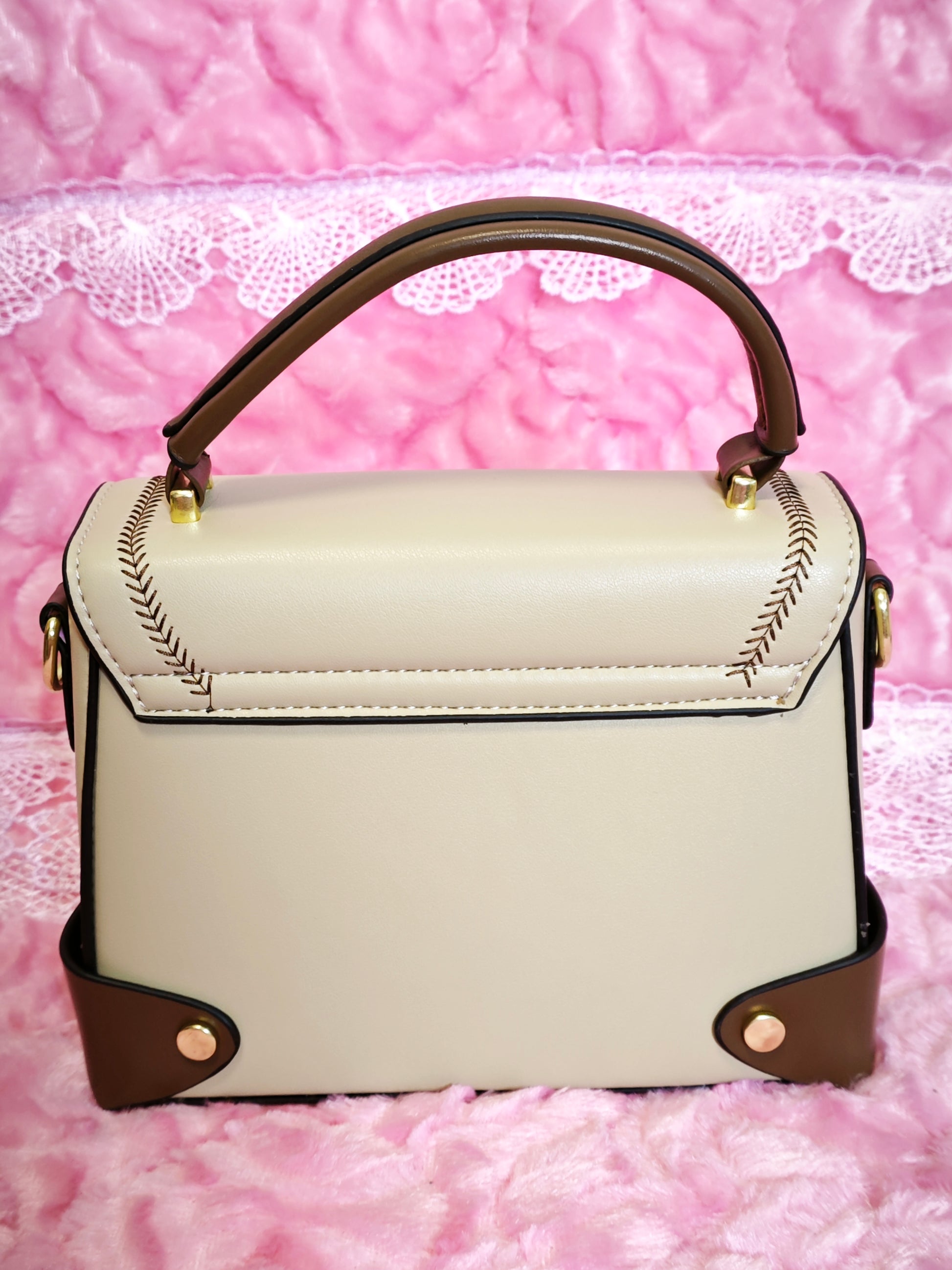 It features a classic mini handheld small square bag silhouette (straight and compact lines), highlighted by "matte texture + retro stitching + gold triangular lock". The combination of "khaki base + dark brown splicing + metal lock" creates a "French retro light luxury style" with the soft khaki tone and retro decorative details. The khaki bag has a "gentle high-end filter", and the mini bag shape is suitable for dating, commuting, shopping and other style scenarios, making it an "eye-catching texture highlight" for outfits.