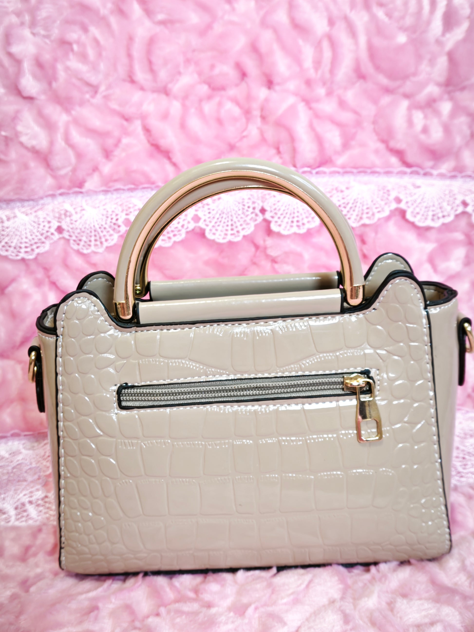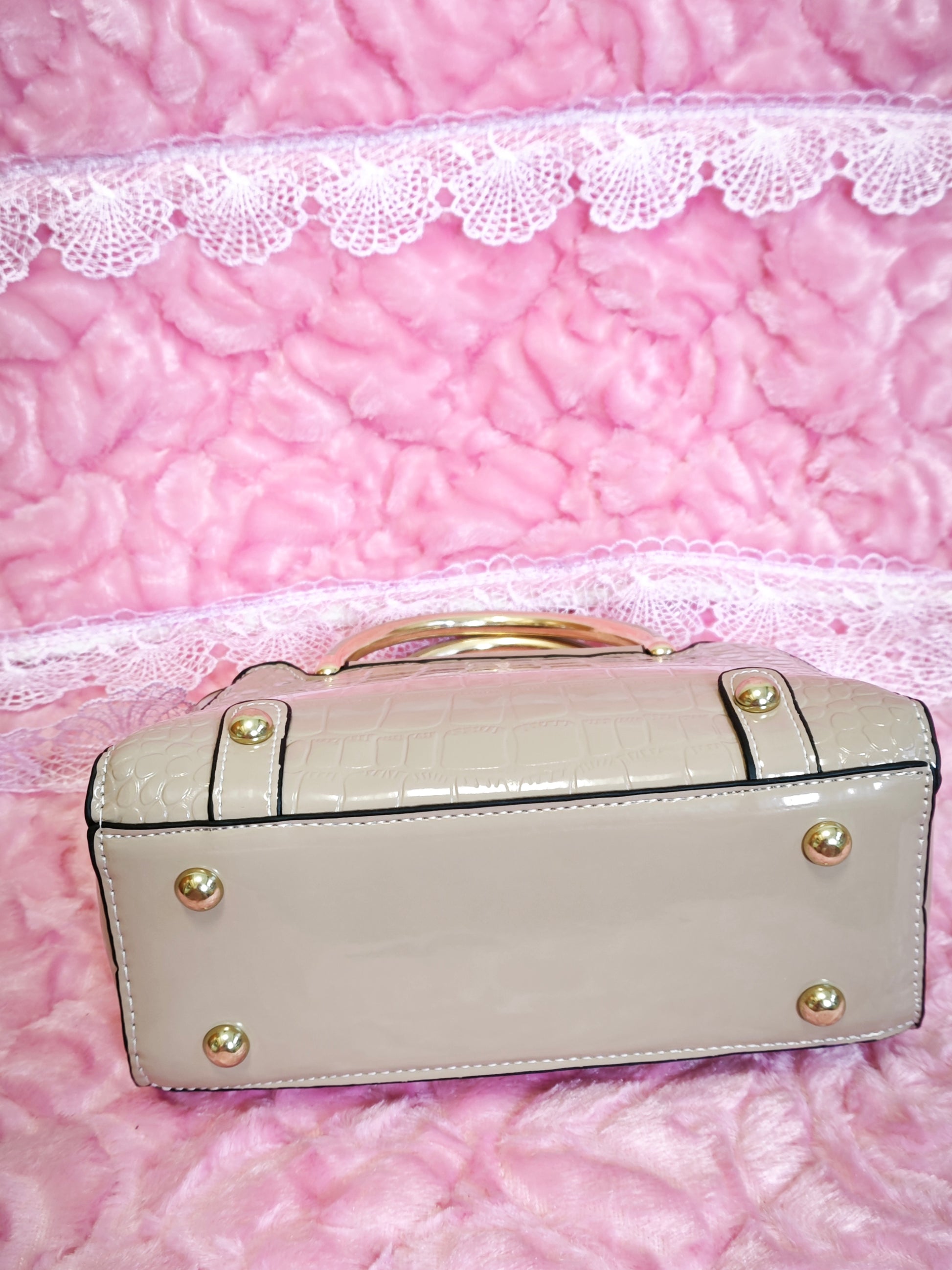 Light Apricot Patent Crocodile Handbag