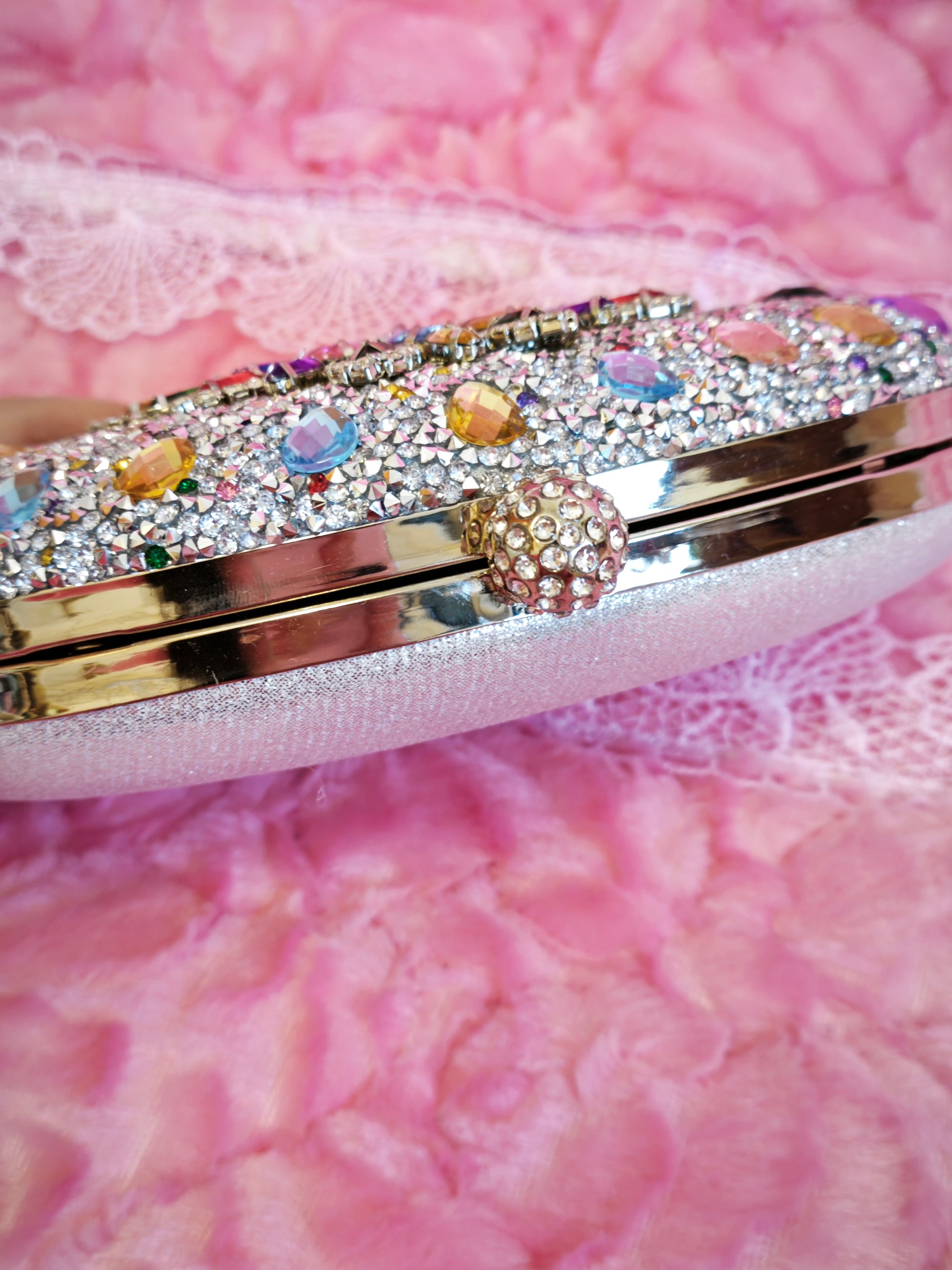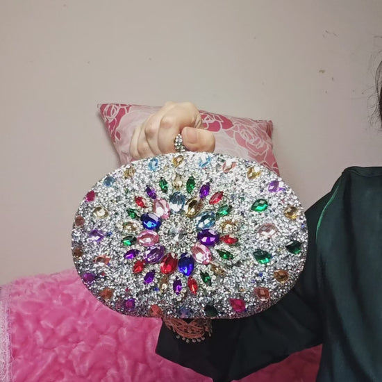 Multi-Colored Crystal-Embellished Oval Evening Clutch