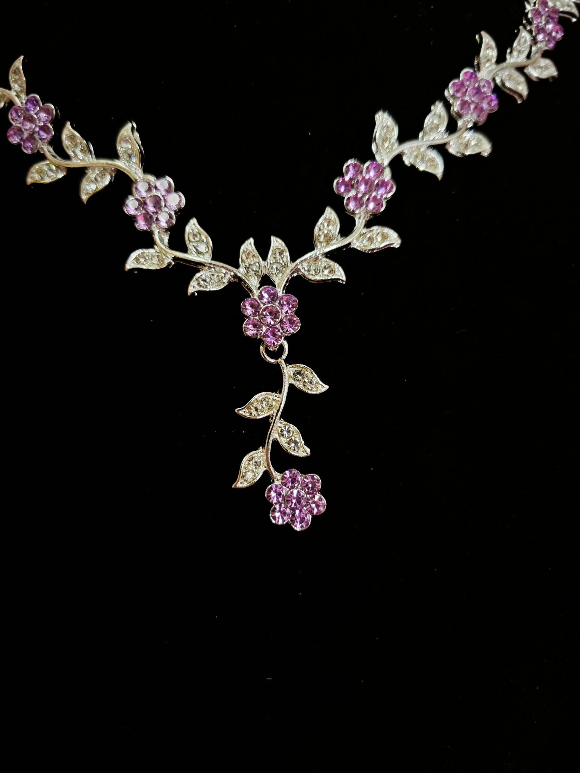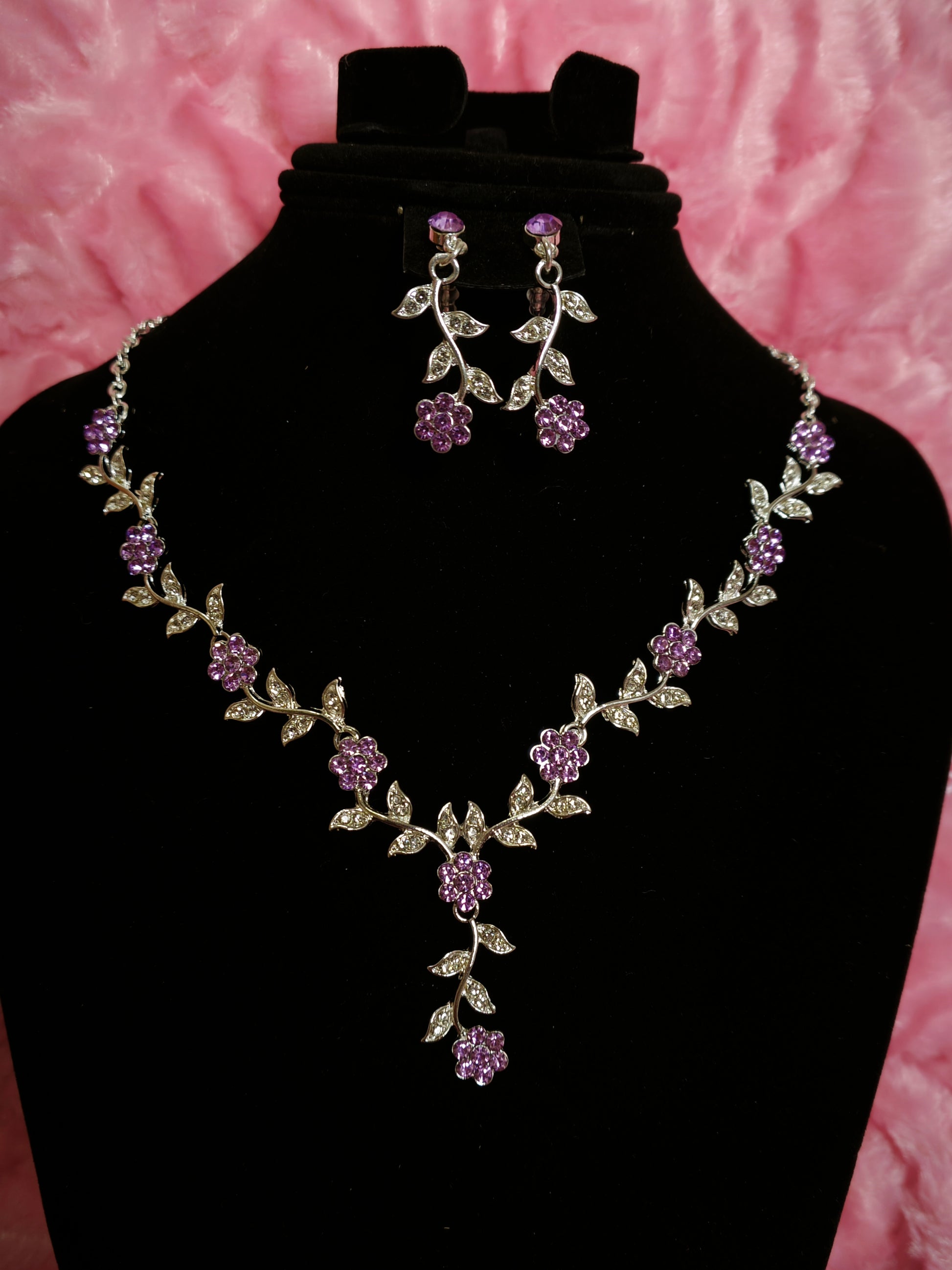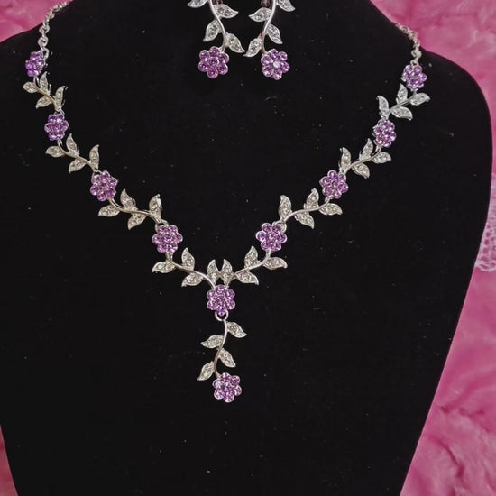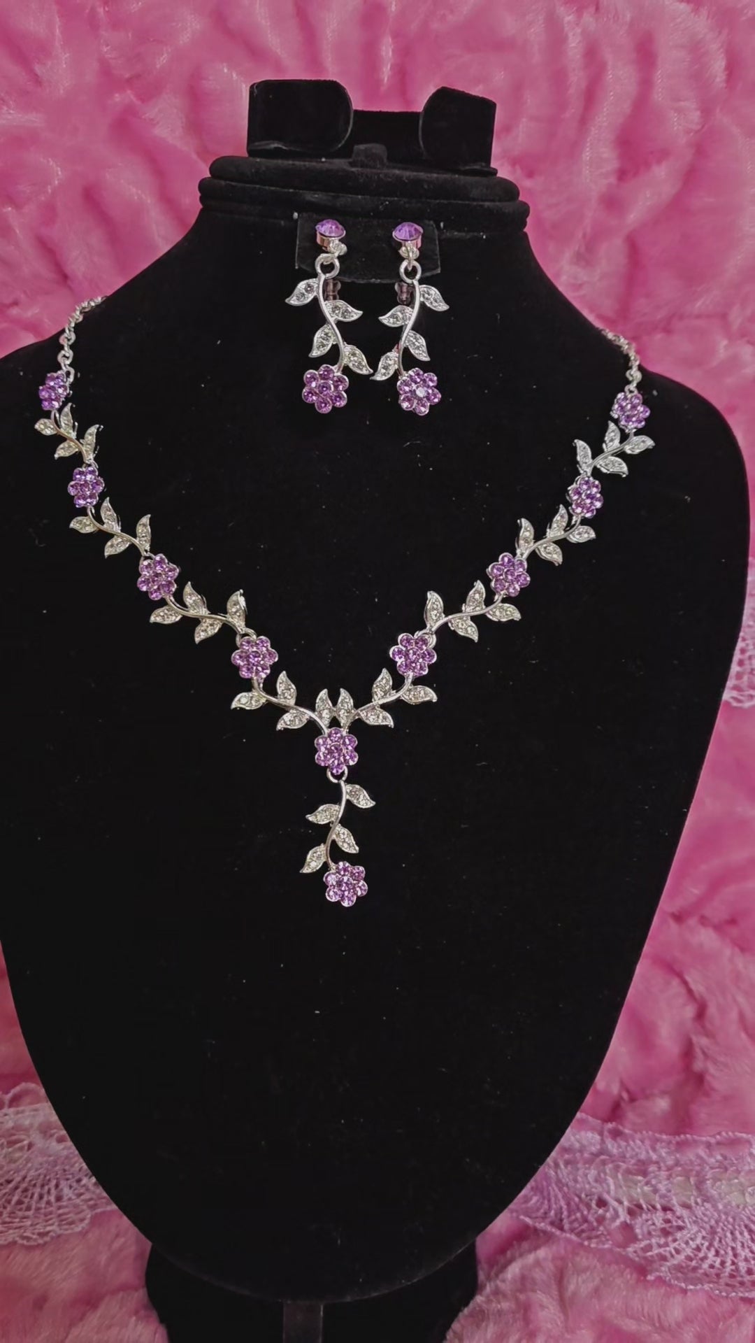 Silver Amethyst & Crystal Floral Twig Necklace & Earring Set
