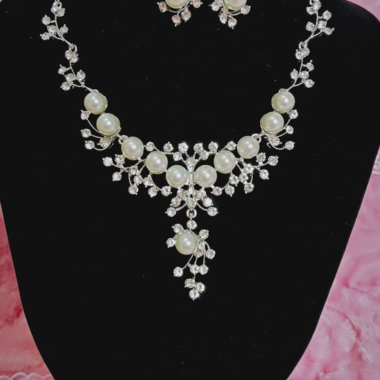 Silver-Tone Pearl & Crystal Vine Necklace & Earring Set