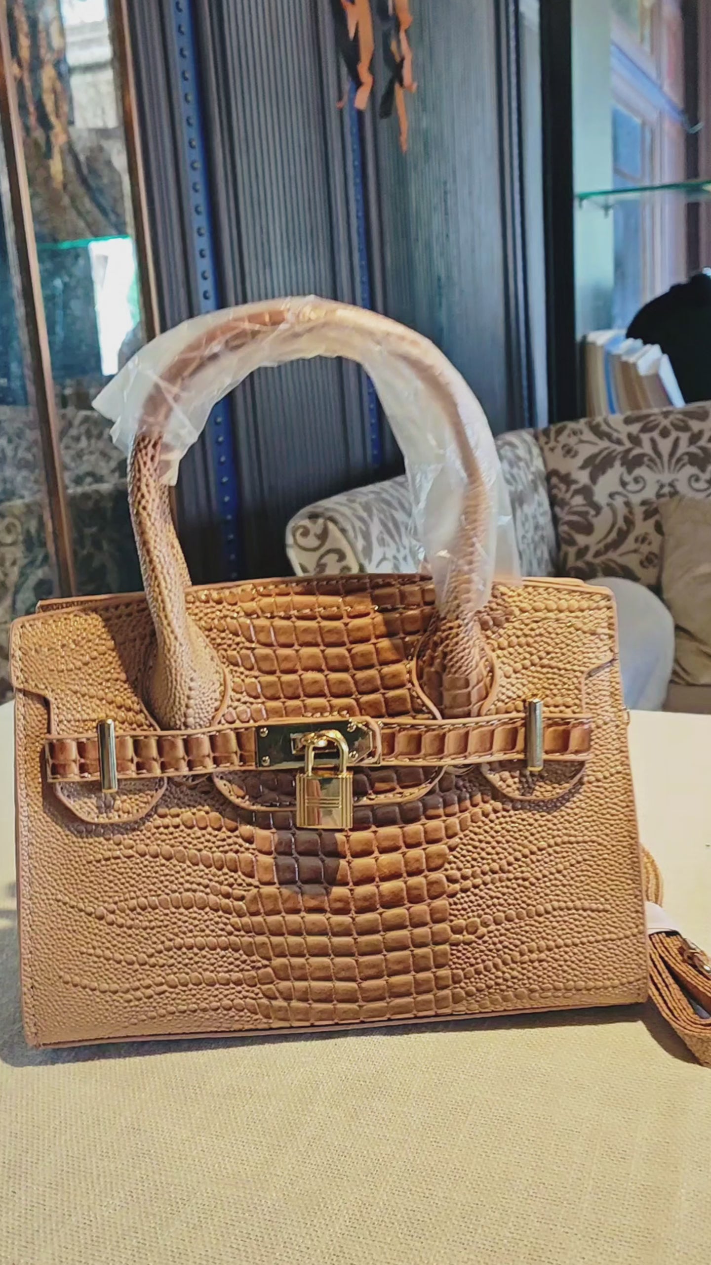Centered on full-panel precision-embossed crocodile texture with staggered depth and rich layers,自带 a retro luxury atmosphere; paired with bright gold metal locks and handle connectors, the retro texture and shiny hardware create a classic lightweight-luxury vibe, suitable for elegant styling in work commutes and formal occasions.