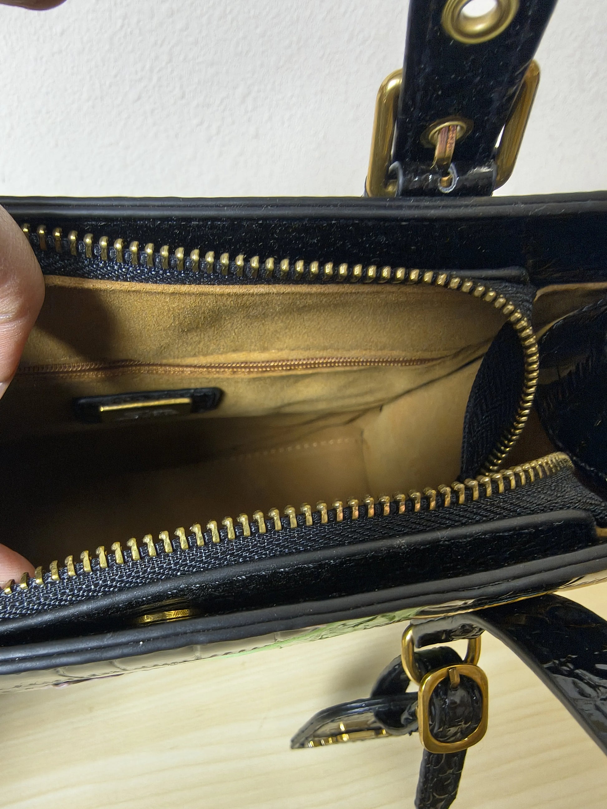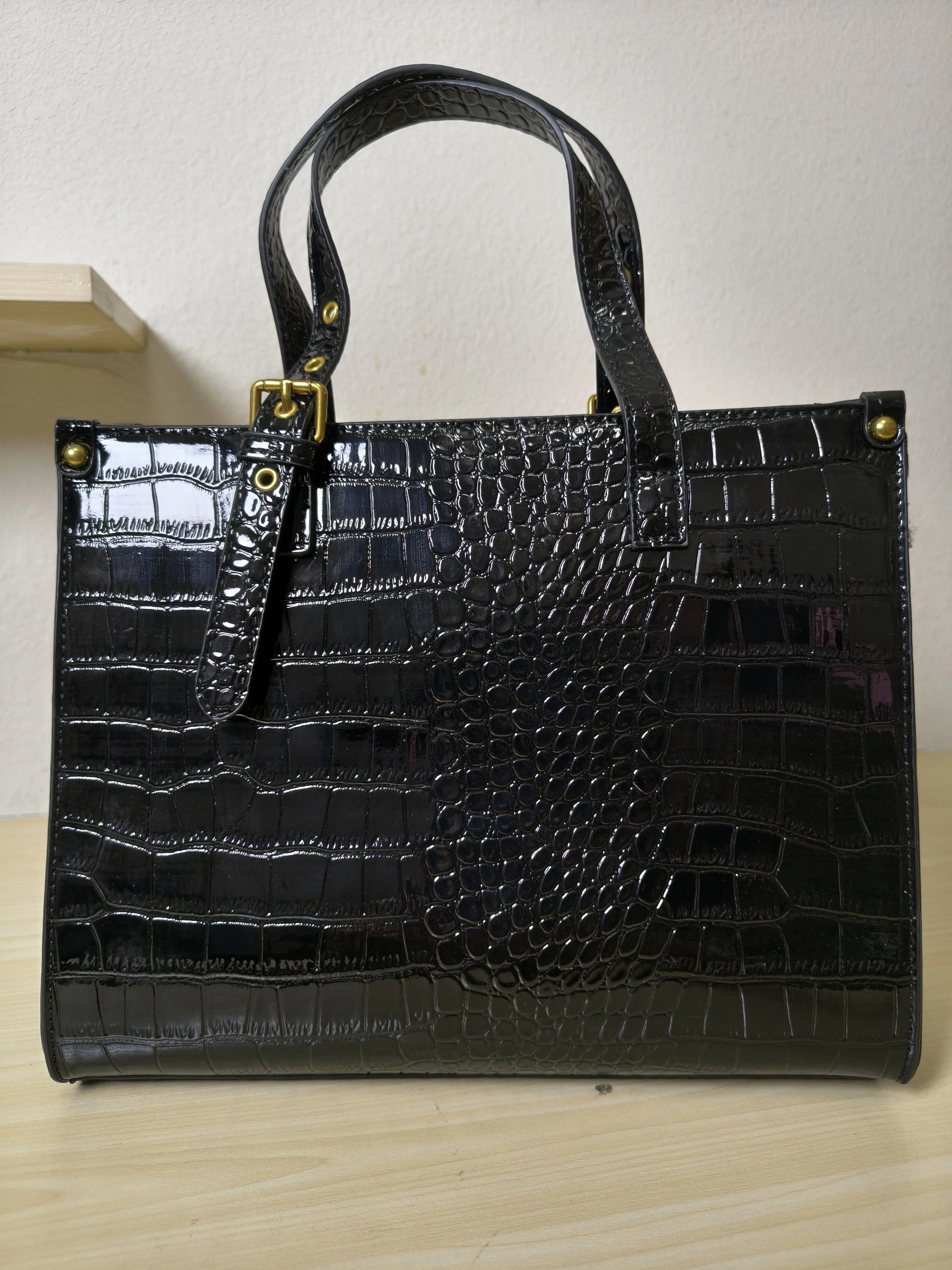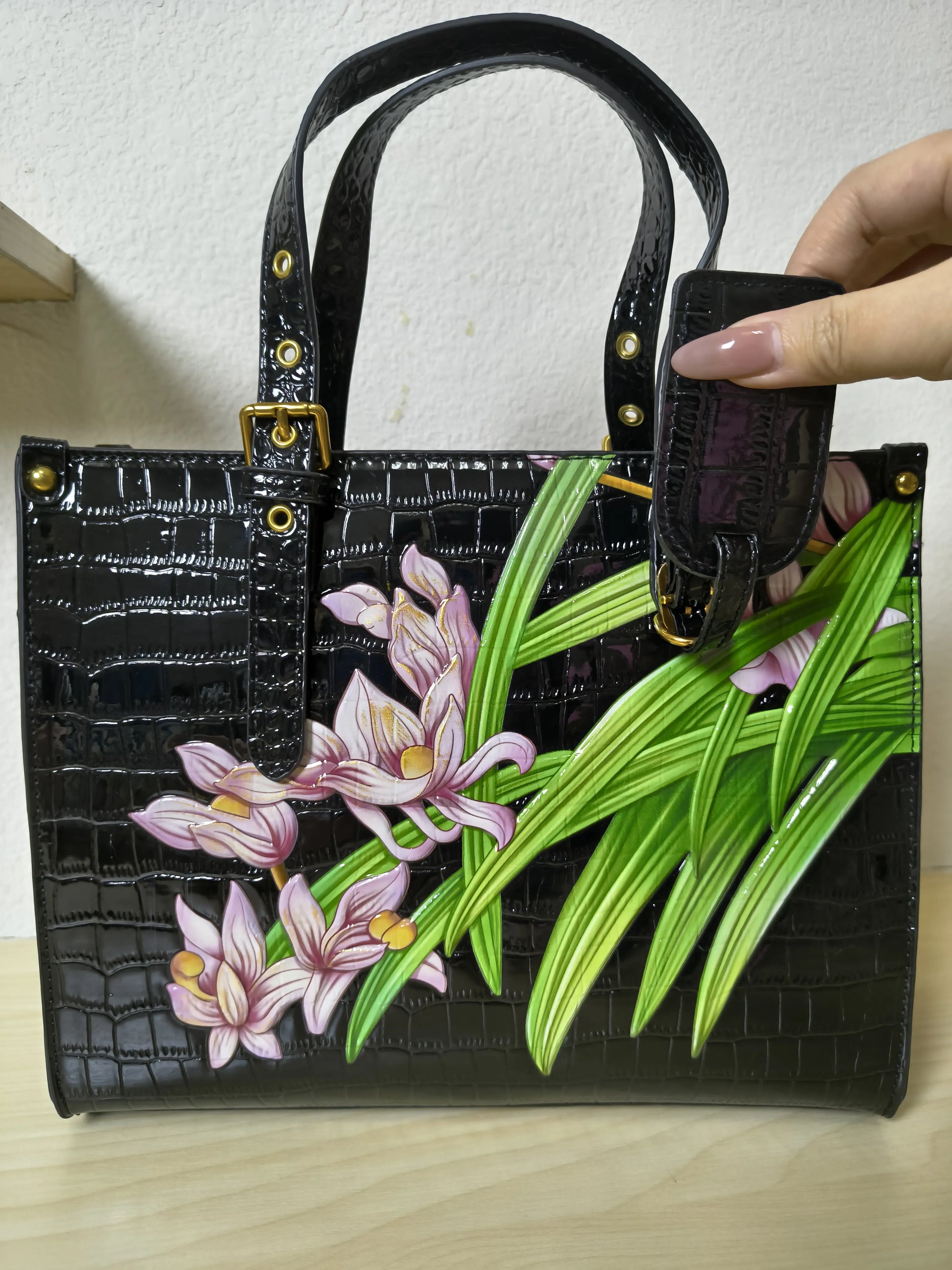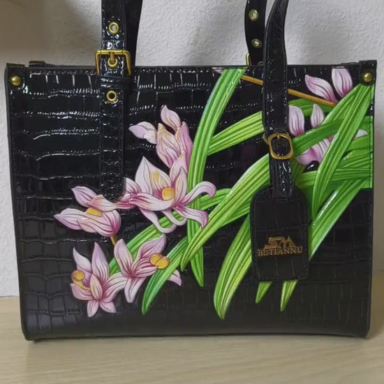 Black Crocodile Embossed Foam Print Pink-Purple Orchid Structured Bag (E88)