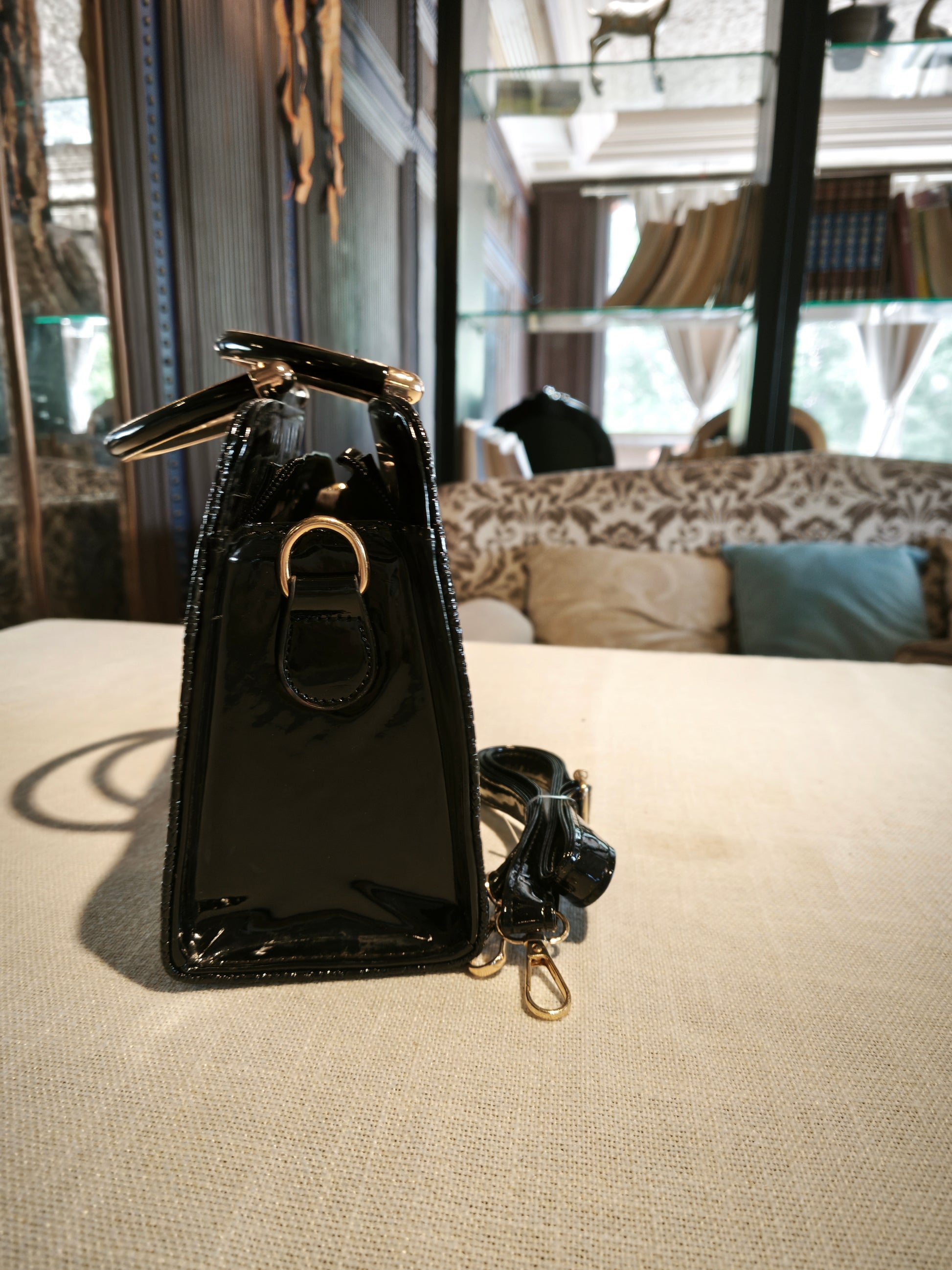 Made of high-gloss spliced crocodile-patterned PU leather: the main body features a 3D crocodile texture, while the lock area uses glossy leather, combining the luxury of simulated exotic leather with scratch resistance and durability; the material has a bright, full luster, and the upscale black base resists fading and oxidation, balancing understated luxury ambiance and long-term sophistication.