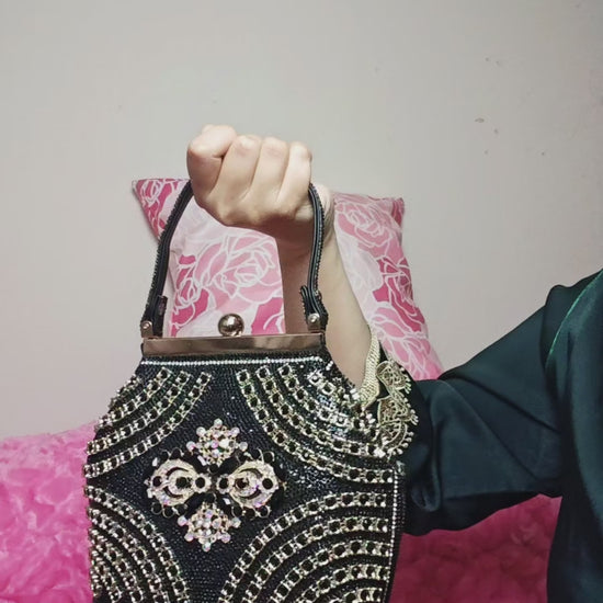 Black Crystal-Patterned Evening Handbag