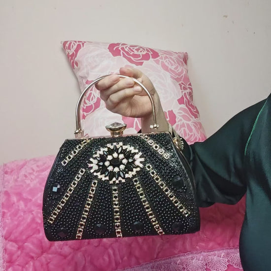 Black & Gold Crystal-Embellished Evening Handbag