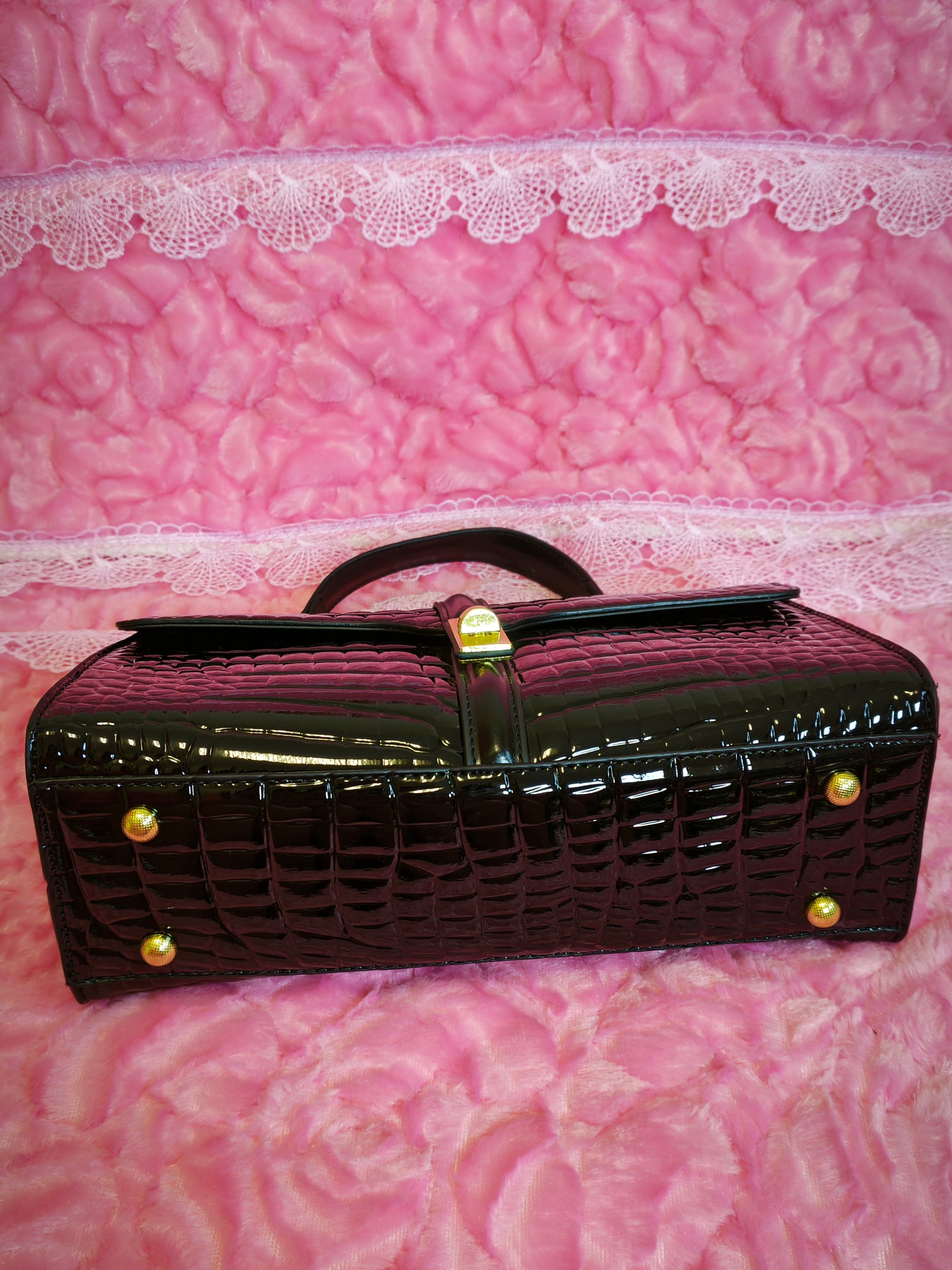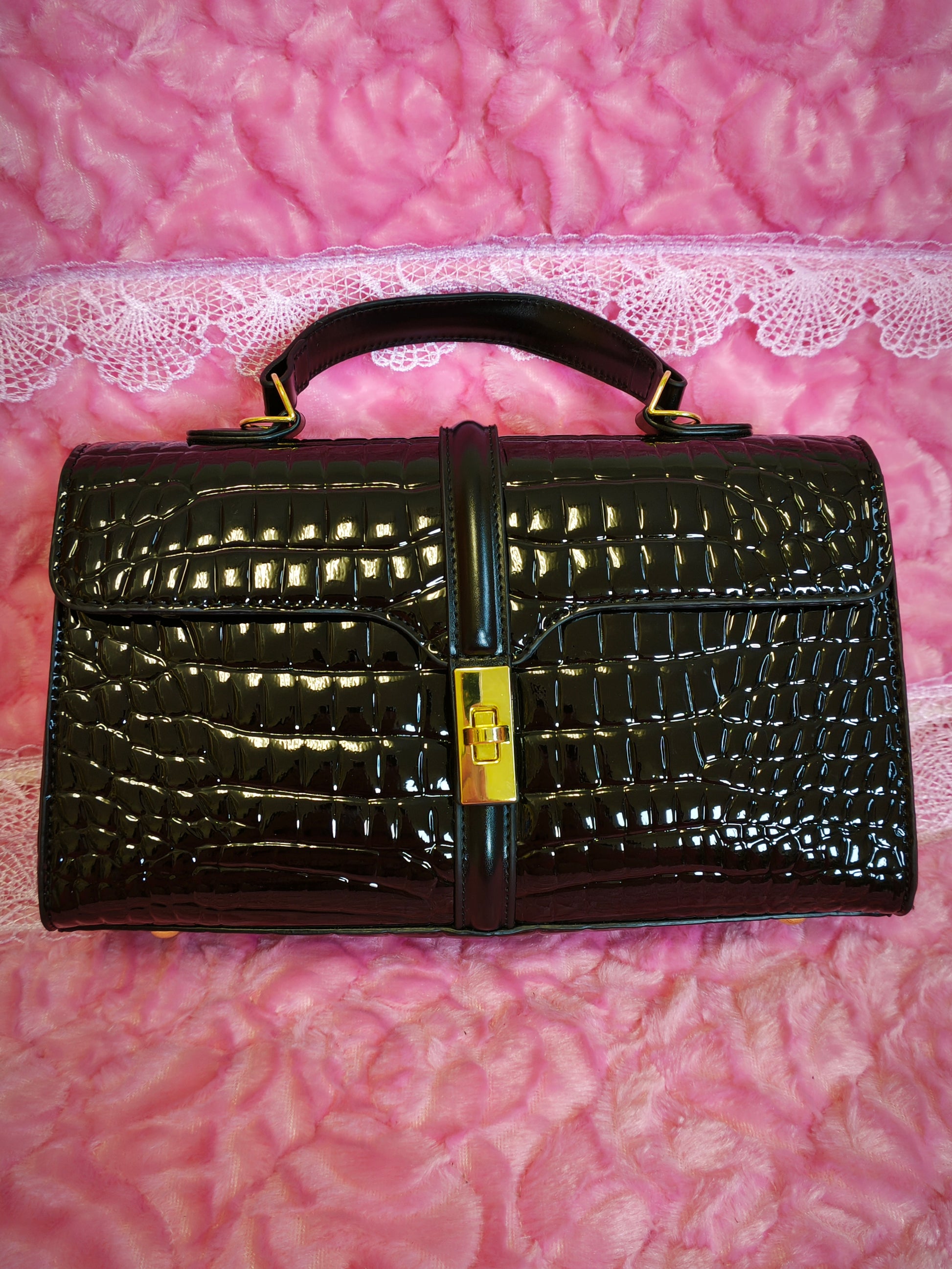 Black Patent Crocodile Handbag