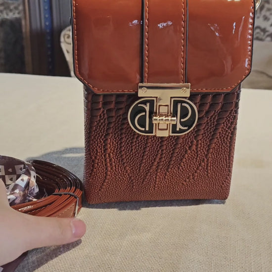 Centered on precision-embossed crocodile texture with natural depth transitions and realistic details, paired with a signature metal "double D" buckle + scarf handle decoration, creating a luxurious collision between retro texture, metal elements, and scarf details; the caramel-brown base + scarf embellishment exude gentle sweetness, suitable for elegant and sweet styling, easily becoming an outfit highlight.