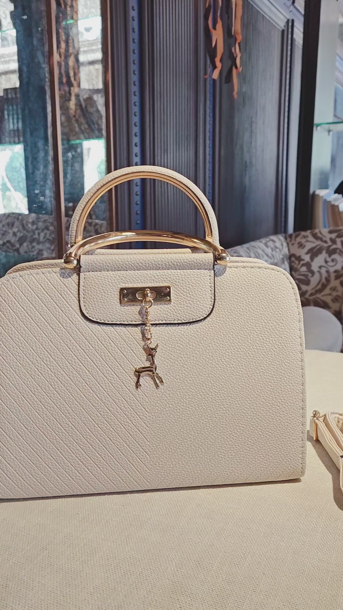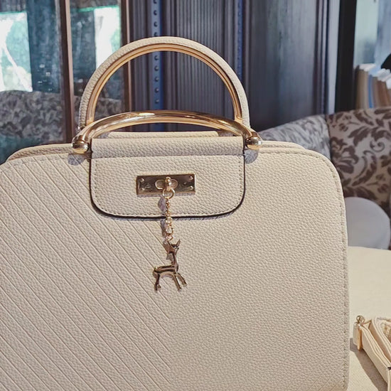 Cream Boston Bag with Deer Charm