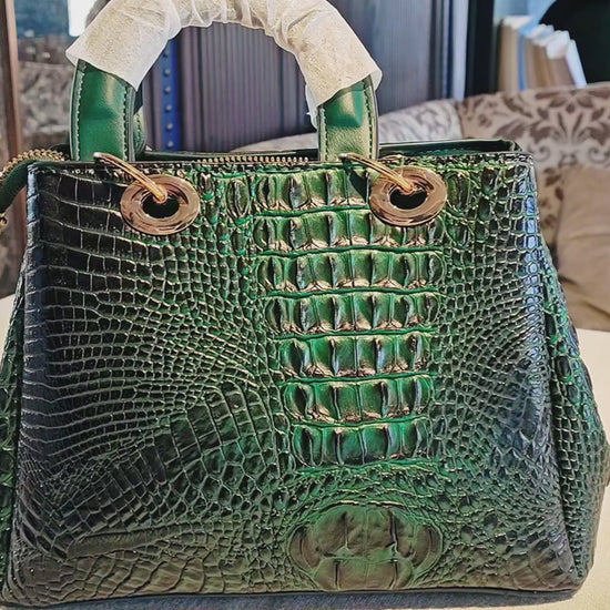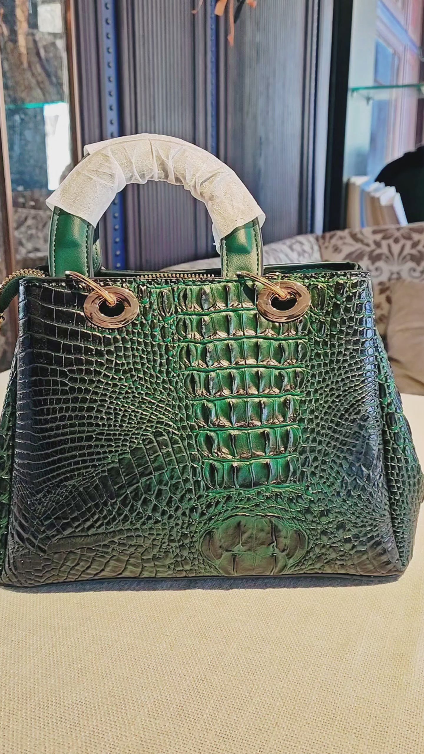 Based on gradient dark green/multi-color bases, paired with full-panel crocodile texture (created via embossing and gradient luster techniques), it has rich layers and strong visual impact; the metal star charm matches the leather style, blending personalized details into retro luxury — perfect for bold outfits.