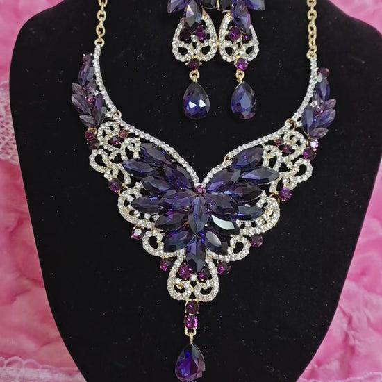Gilded Amethyst & Crystal Floral Necklace & Earring Set