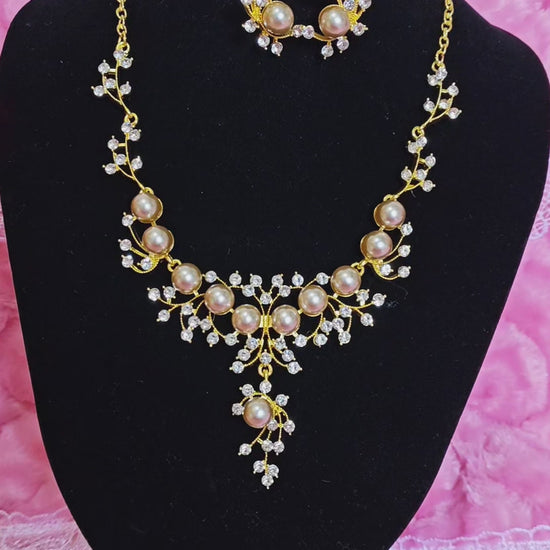 Gilded Champagne Pearl & Crystal Vine Necklace & Earring Set
