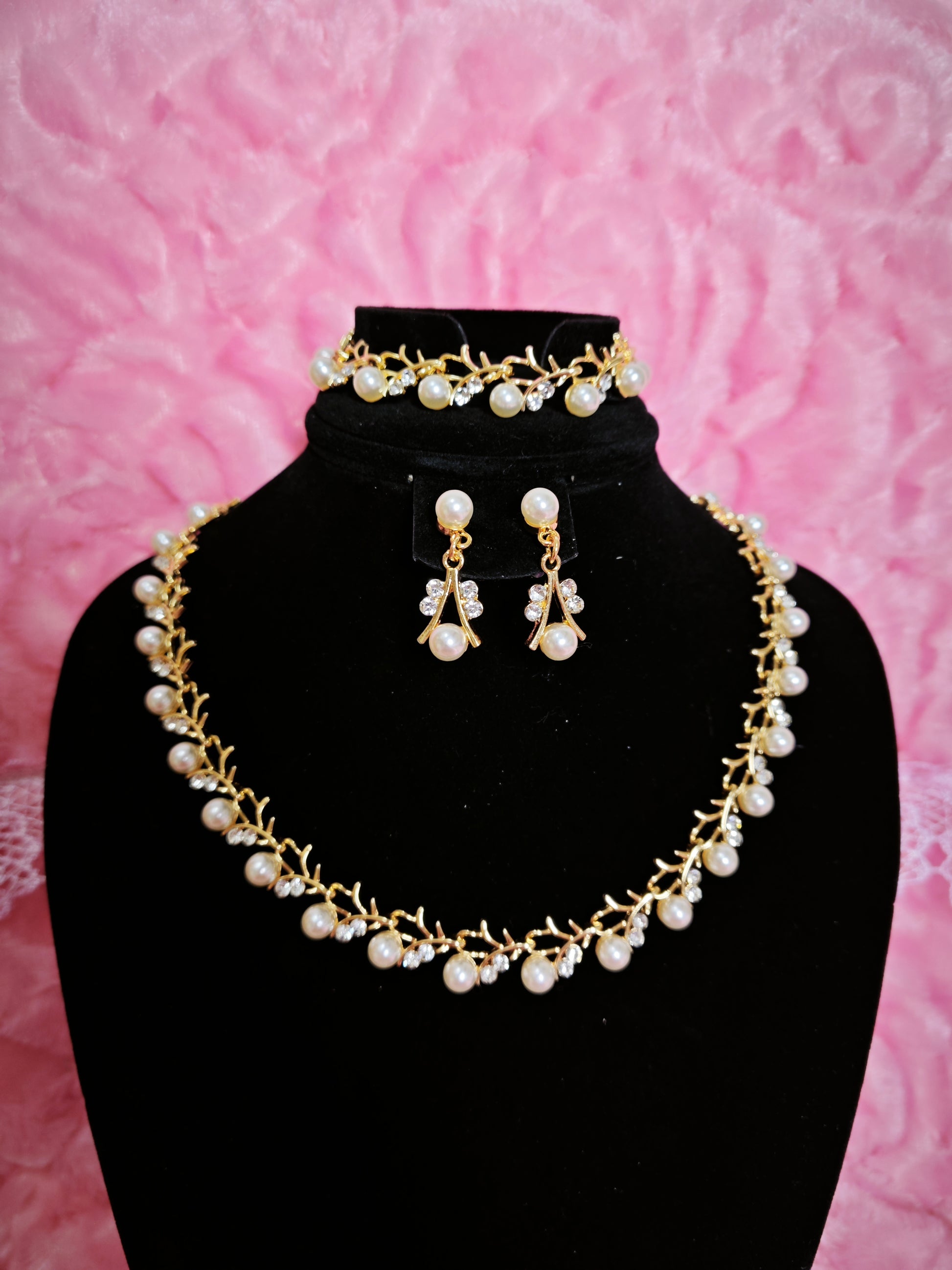Both the necklace and bracelet have adjustable circumference designs (suitable for most neck and wrist circumferences respectively), and the earrings are drop-style (easy and stable to wear). The gold vine pearl and diamond set can be worn as a whole or split. The necklace is suitable for clothes with strapless, off-the-shoulder, V-necklines, etc., the bracelet can be worn alone with daily outfits, and the earrings are suitable for various earring matching needs. Multiple matching methods meet the styling needs of different scenarios.