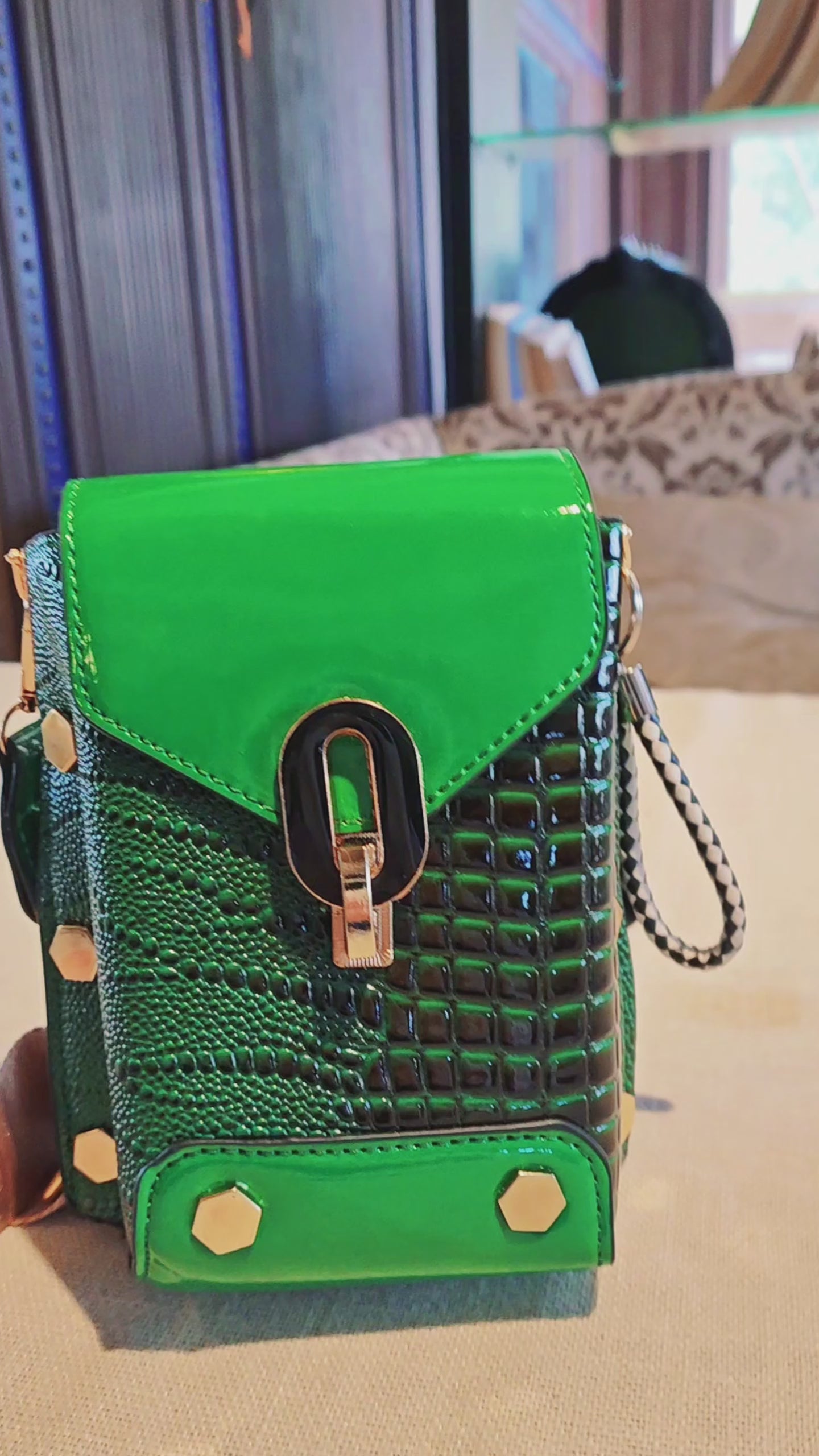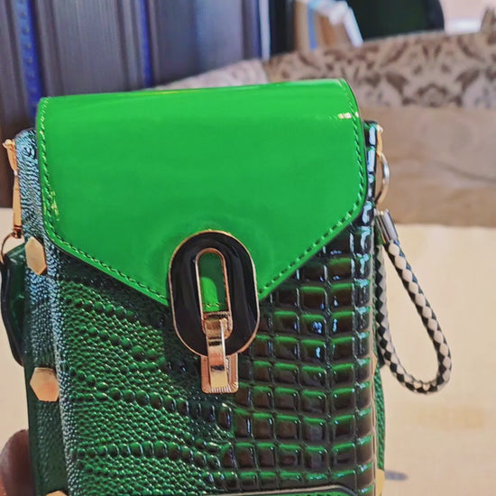 Green Crocodile Pattern Crossbody Mobile Phone Bag