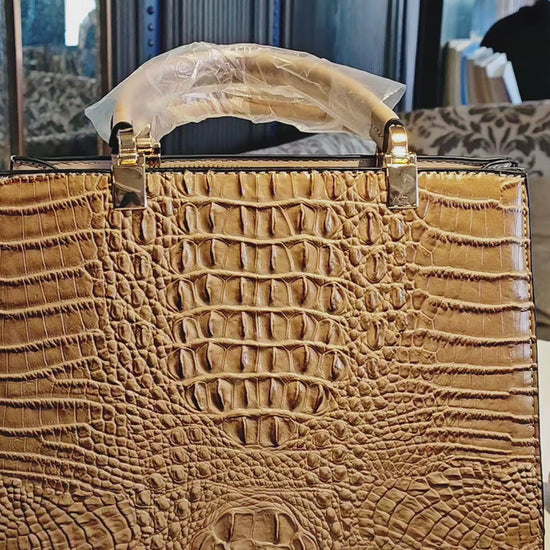 Light Khaki Crocodile Pattern Top-Handle Mother-and-Son Bag