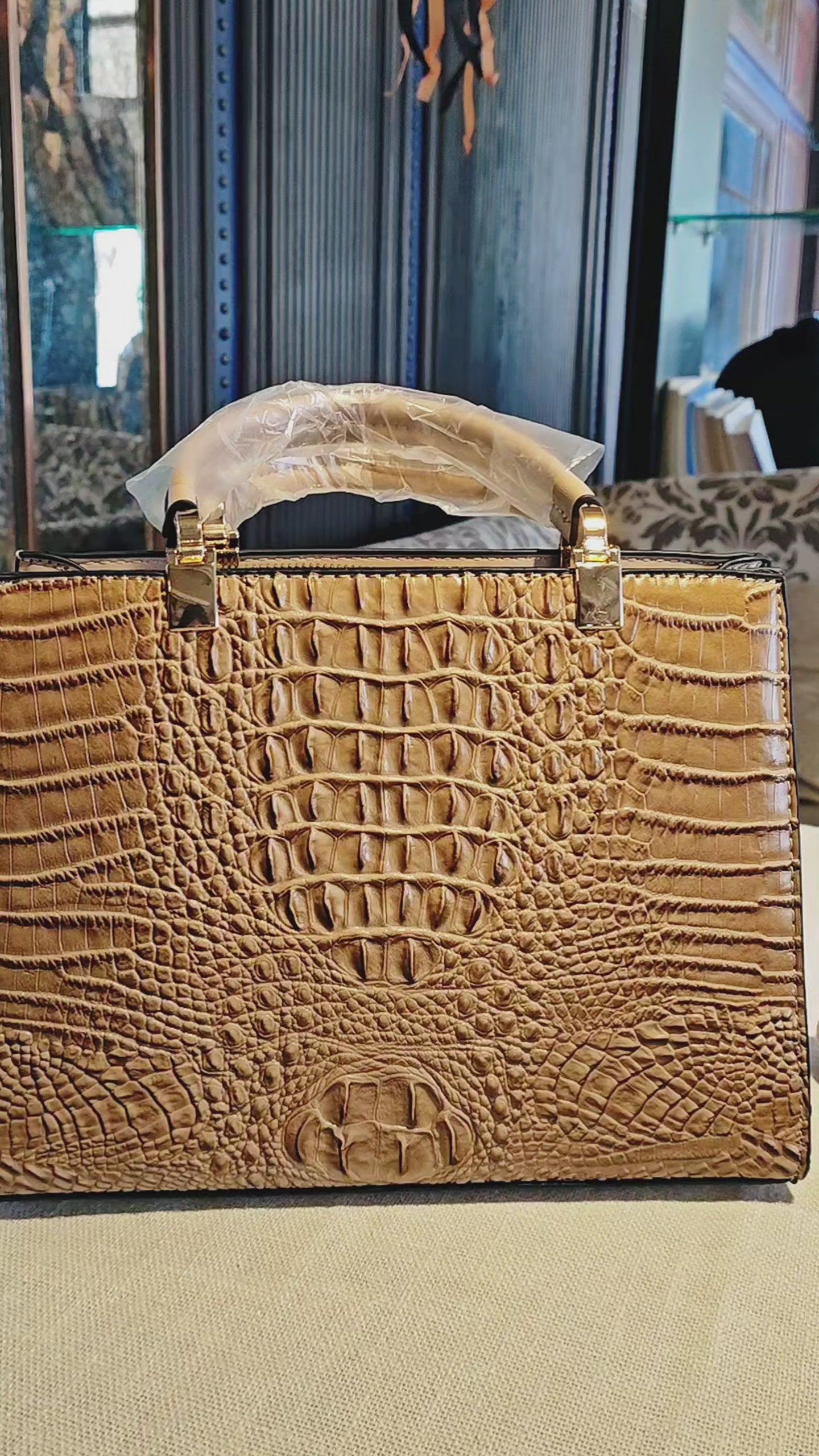 Centered on full-panel simulated crocodile texture, formed via deep embossing for clear, natural details; paired with gold metal hardware (handle buckles, charm), the retro texture and delicate metal create a luxury style, fitting elegant and bold styling.
