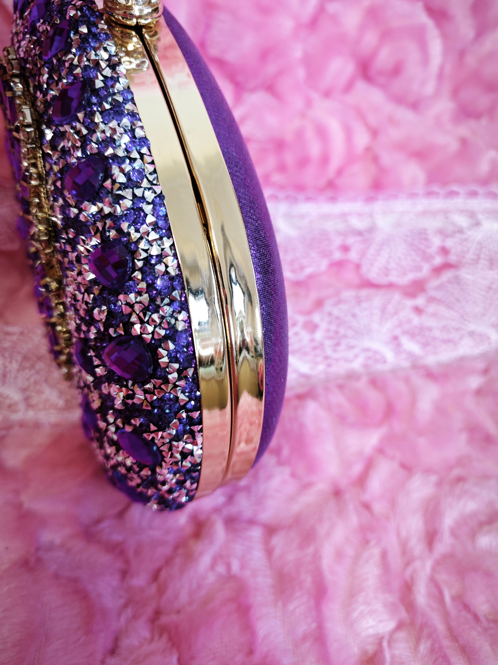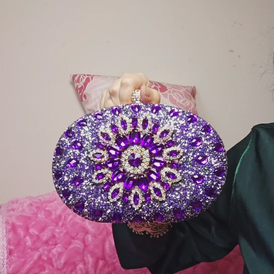 Purple Crystal-Embellished Oval Evening Clutch