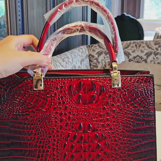- Work commutes: Handheld styling is sleek and refined, with the bright red + crocodile pattern matching office attire to enhance workplace luxury;