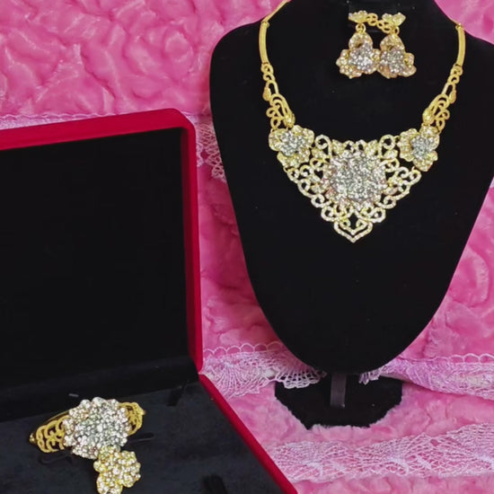 Royal Gilded Diamond-Floral V-Neck Jewelry Set