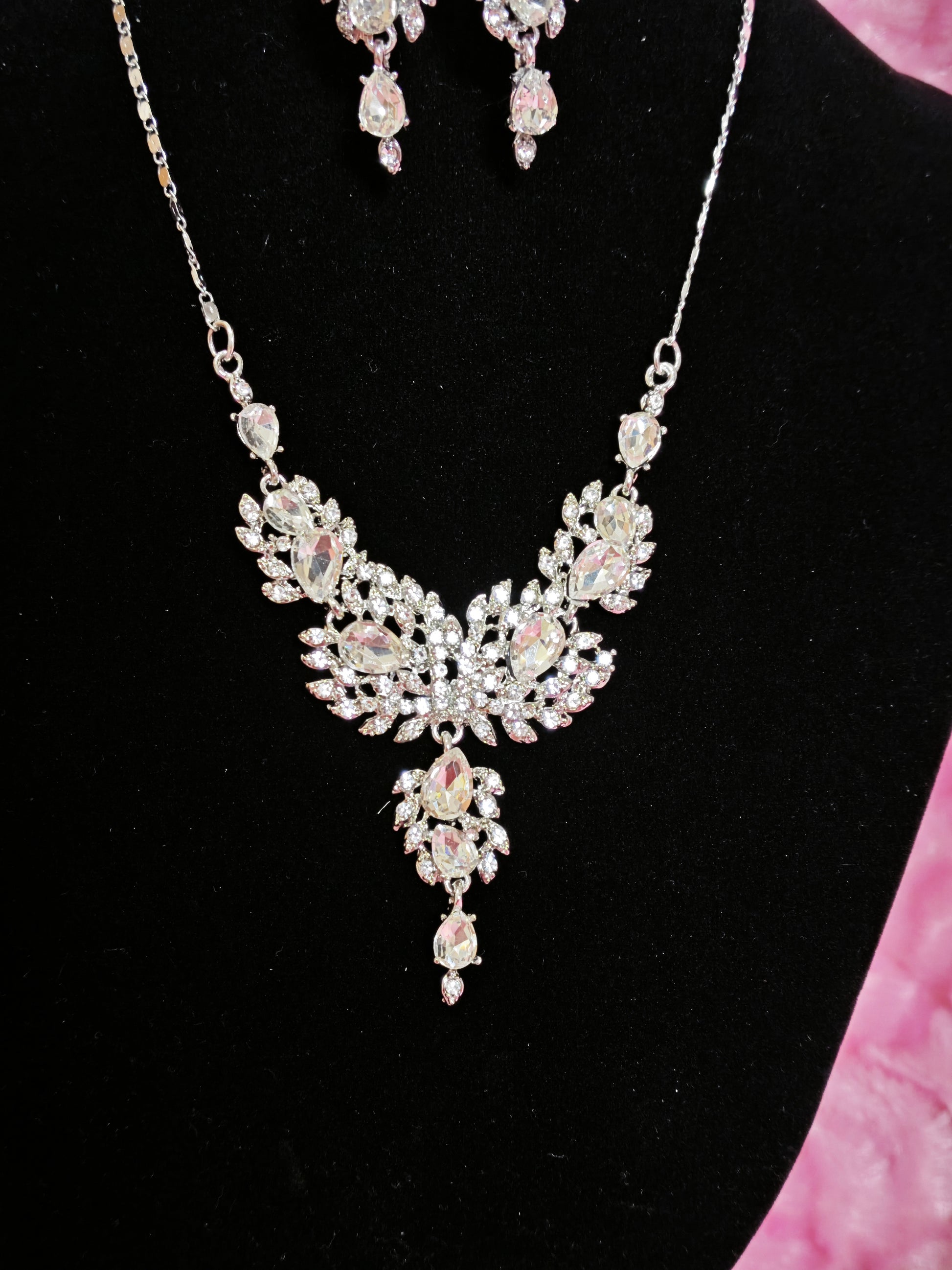 Silver Blush Crystal Leaf Cluster Necklace & Earring Set