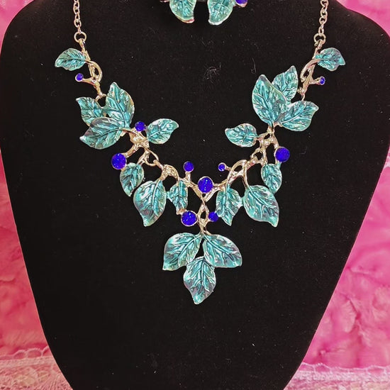 Silver-Tone Aqua Leaf & Blue Crystal Necklace & Earring Set