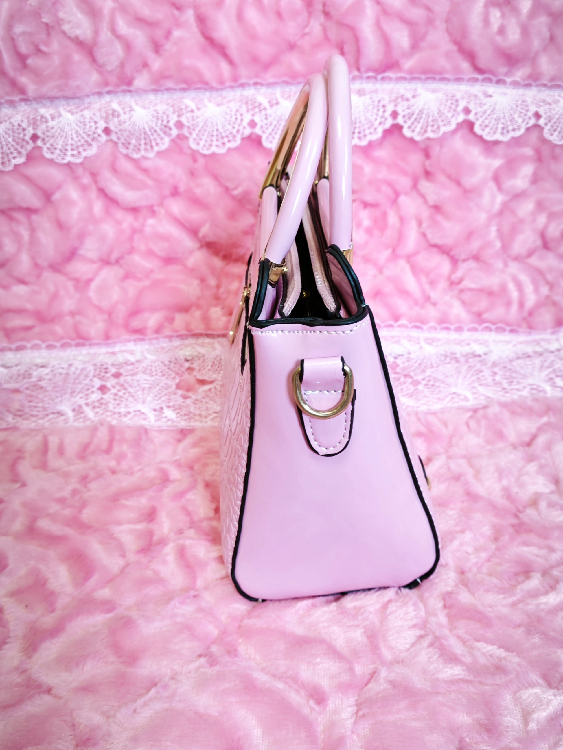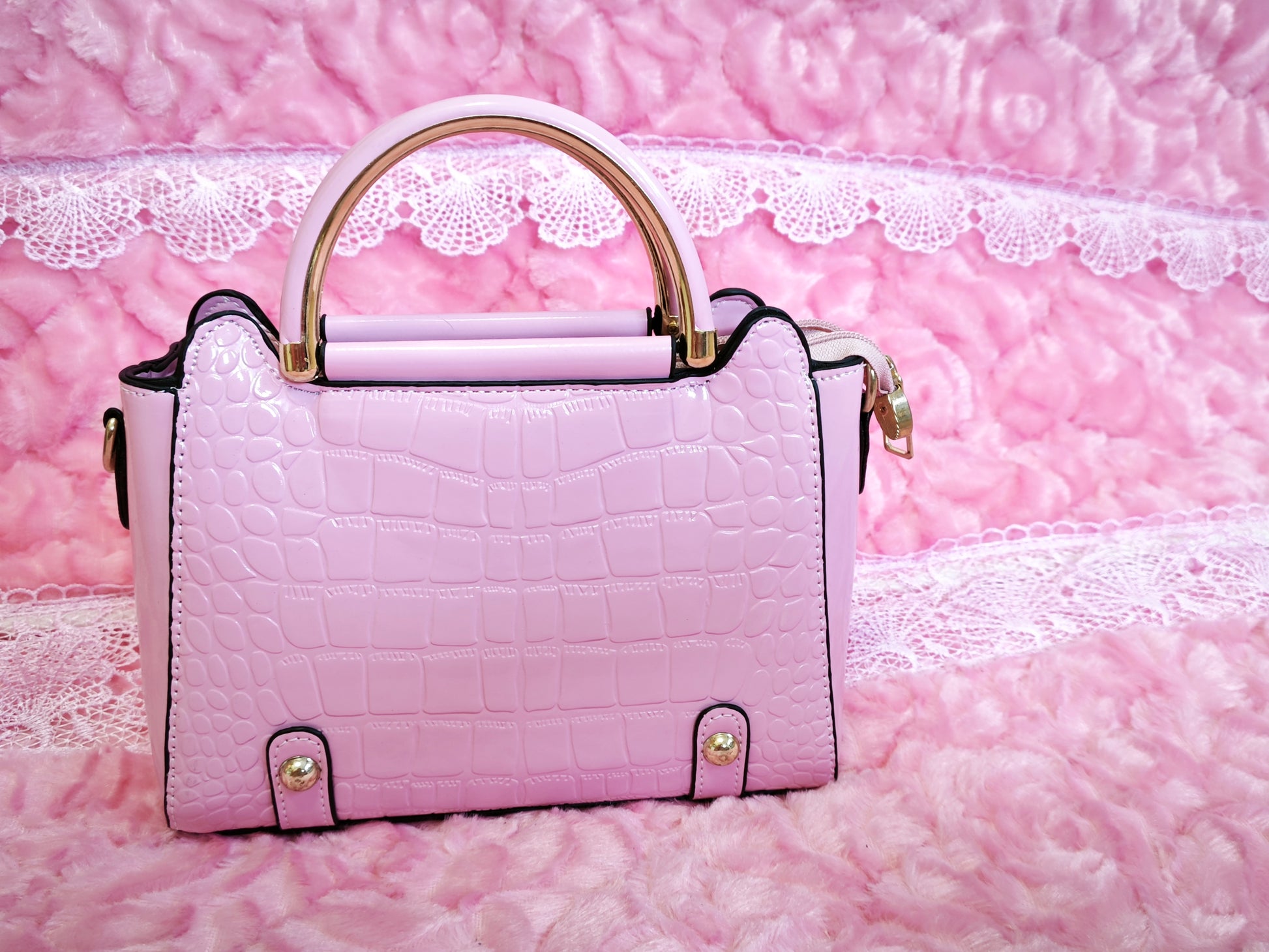 Soft Pink Patent Crocodile Handbag