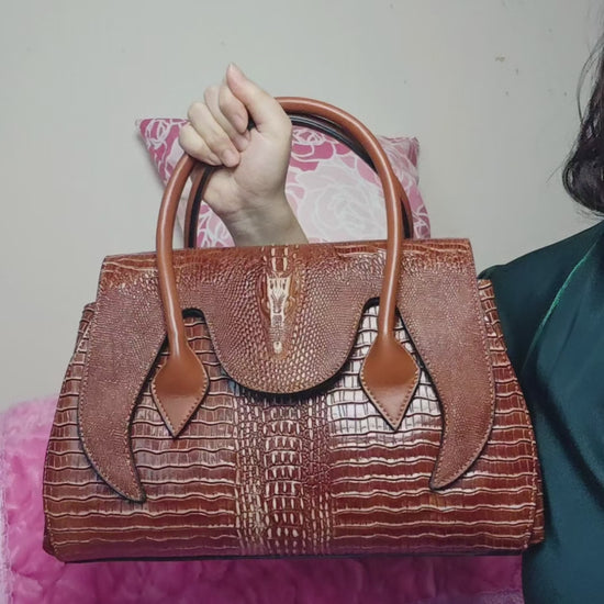 Full-panel precision-engraved crocodile patterns (naturally restoring genuine leather texture), paired with "3D crocodile head shape" as accents—the grand tension of retro crocodile patterns collides with the detail sense of bionic decoration to create a "caramel genuine leather retro light luxury vibe"; the caramel brown crocodile pattern + metal hardware come with an "elegant luxury filter," suiting dinners/commutes as a "warm-toned high-end texture anchor" for outfits.
