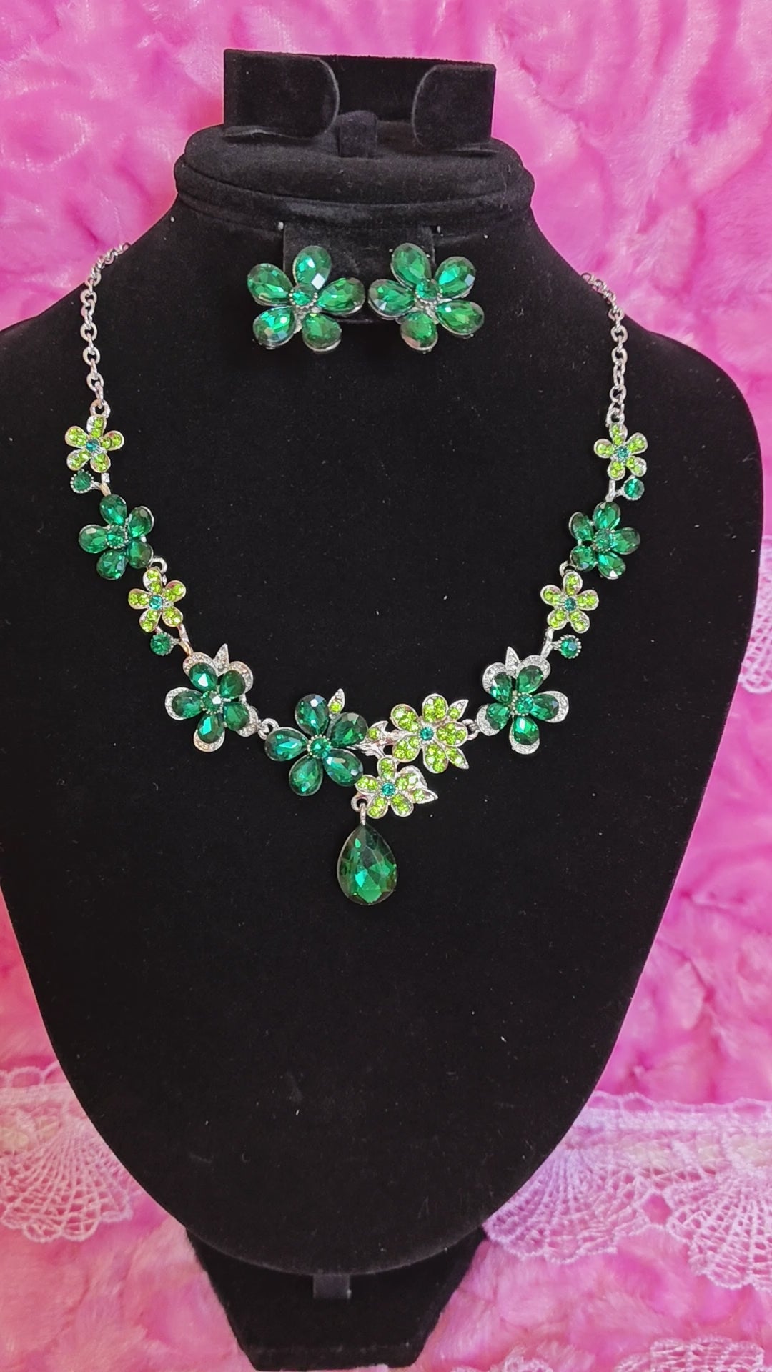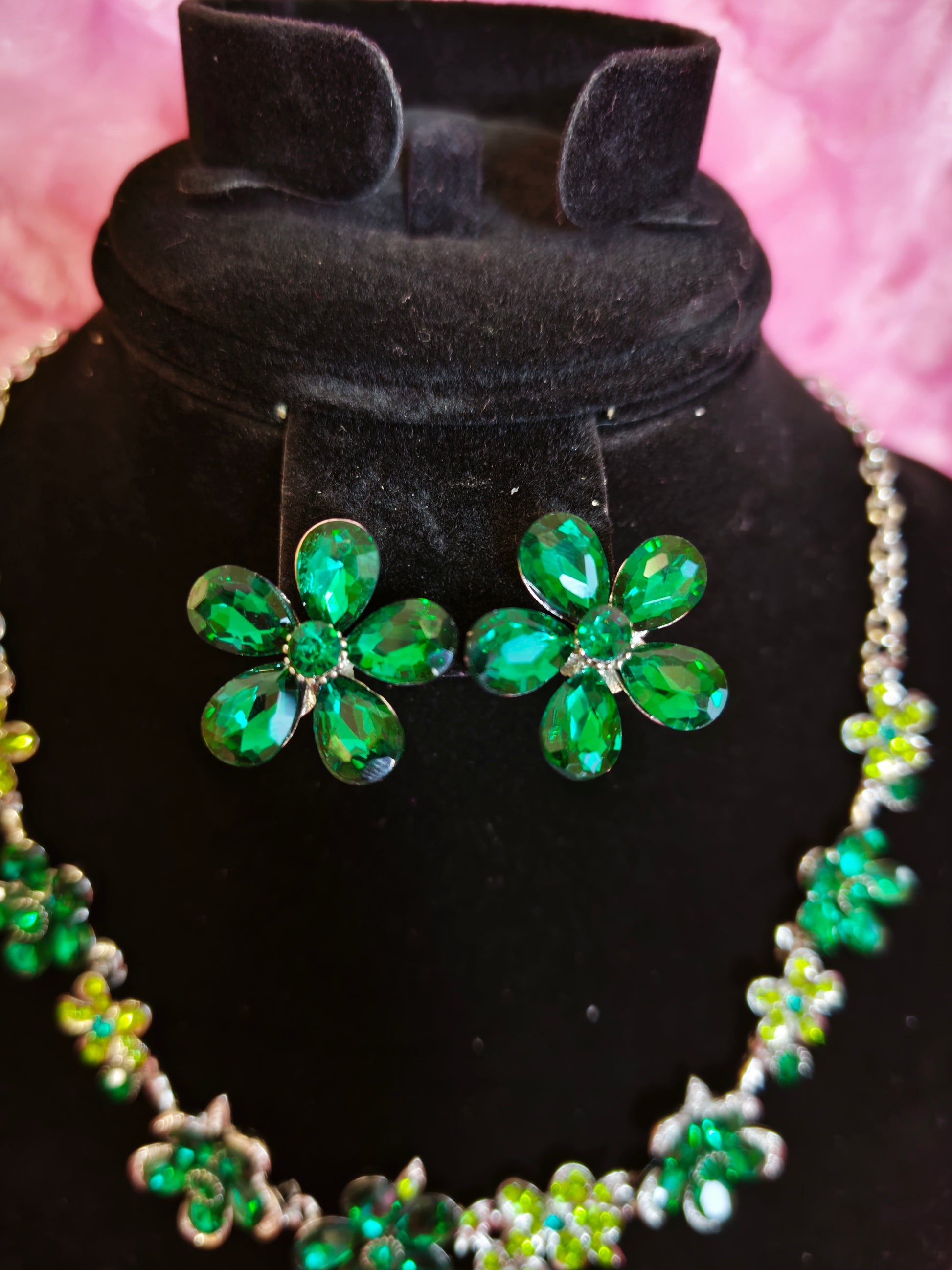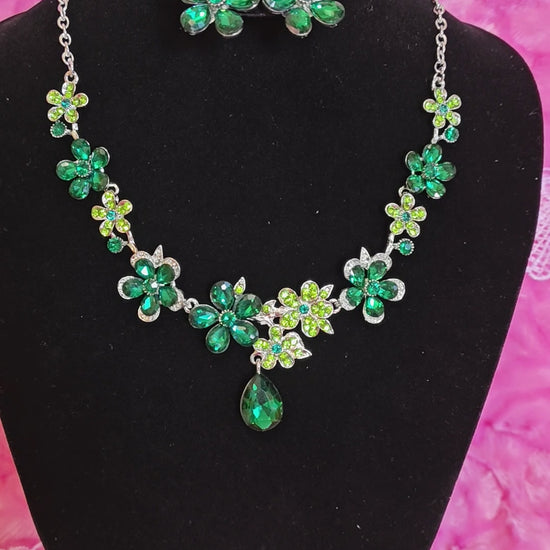 Vibrant Emerald Floral Statement Necklace & Earring Set