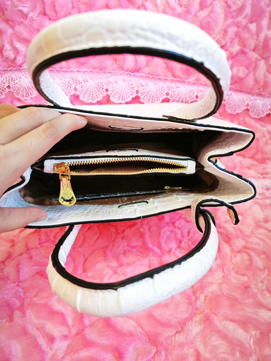 Full-panel precision-engraved crocodile patterns, with depth transitions that mimic the natural growth of genuine leather, paired with matte metal hardware as accents. The wild tension of retro crocodile patterns collides with the restrained aesthetics of the minimalist bag body, creating an "understated luxury vibe"; the pure white crocodile pattern comes with a cool, elegant filter, adapting to minimalist, retro, and other styles—it’s an "invisible texture amplifier" for outfits.