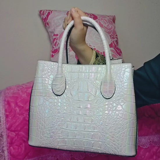 White Croc-Embossed Elegant Tote Bag